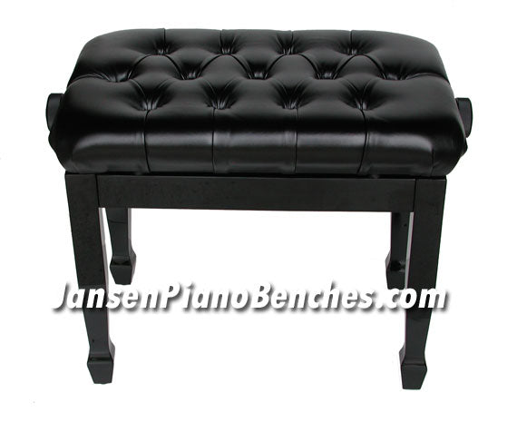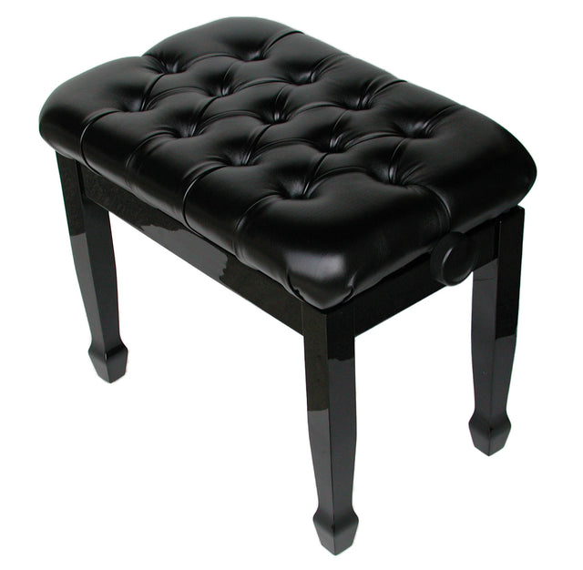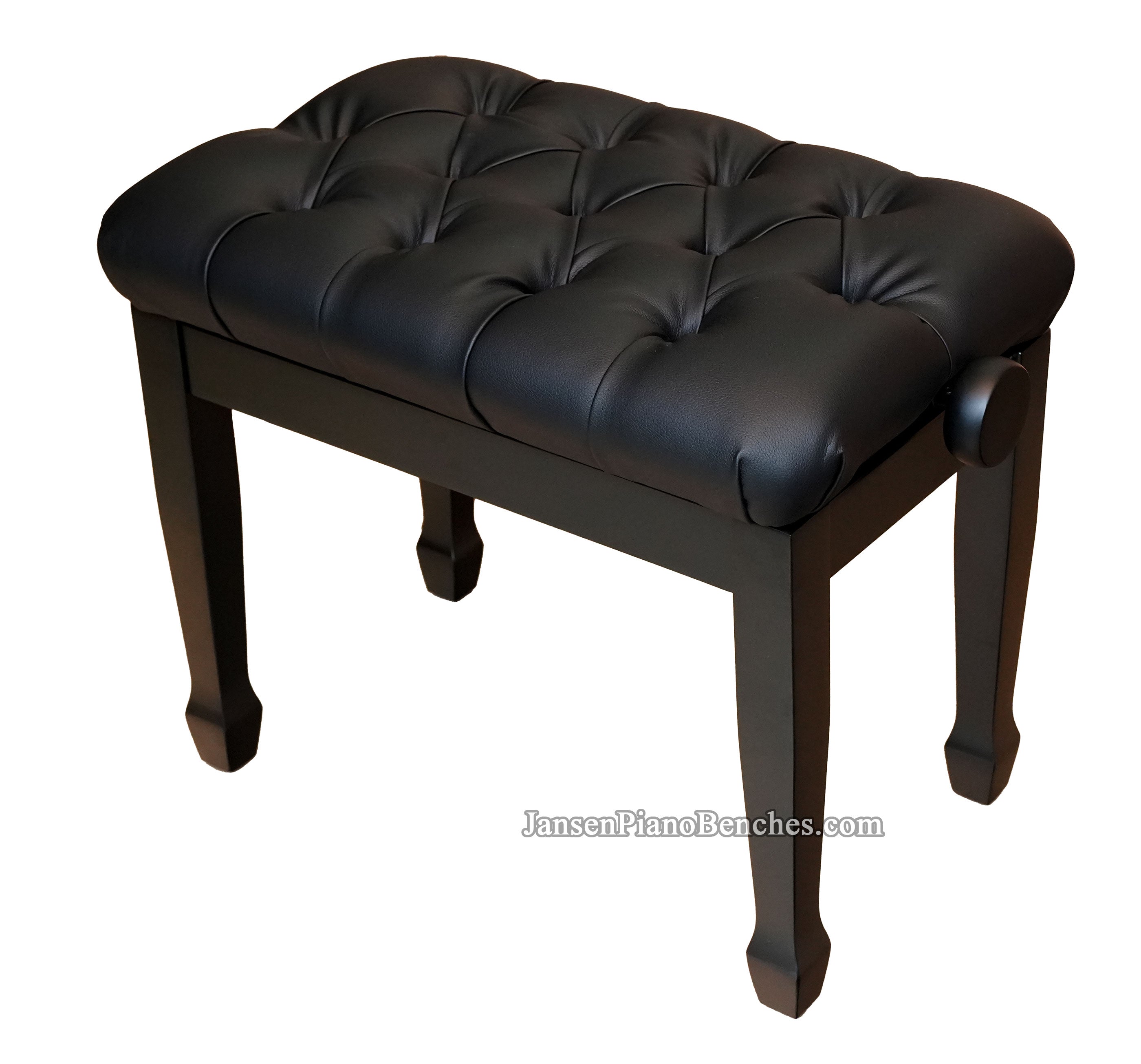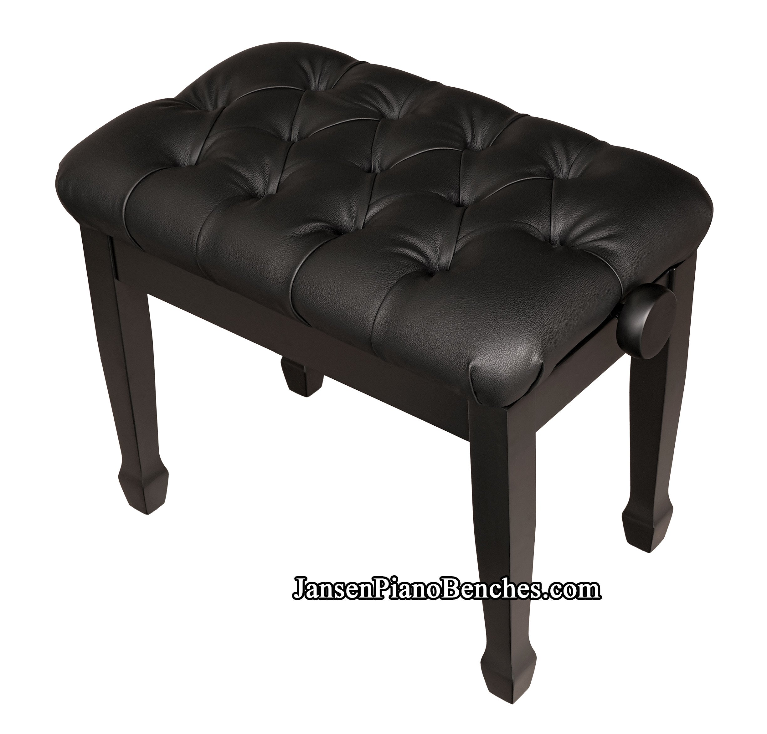 The pillow top adjustable piano bench, with its tufted top and extra-thick foam, is one of the most comfortable piano benches you will ever sit on. The manufacturer pays superior attention to detail and quality, using the highest quality materials, and outfitting the piano bench with an above-average, heavy-duty raising mechanism. For added protection, rubber stoppers are provided on both the bottom of the legs to protect the floor, and on top of the wooden frame to protect the heavily-padded upholstered top. In sum, we highly recommend this piano bench and believe there is nothing comparable to it in its mid-sized and mid-priced range.