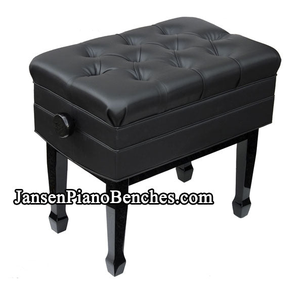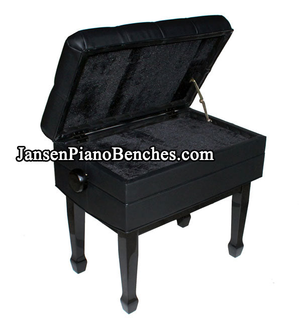 Made of high quality materials and built to last, the bench frame and legs are made of 100% birch hardwood, and the wood adjustment knobs are finished to match the wood frame. A comfortable bench, with the hard to find storage compartment! A great option for both grand and upright pianos.