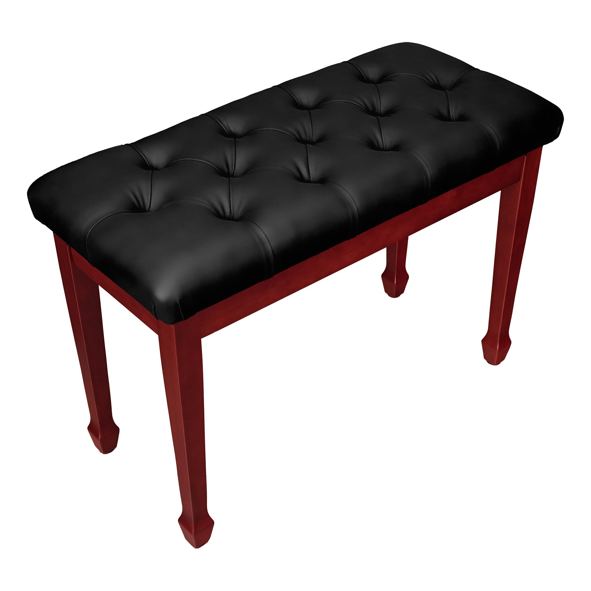 Note on the Mahogany Finish: Unlike most satin mahogany benches that come with a brown or burgundy seat, this model features a black vinyl top. This unique pairing was introduced by popular request, offering a sleek, modern contrast that complements both traditional and contemporary interiors (black goes with everything, and many customers have black furniture in their piano rooms).