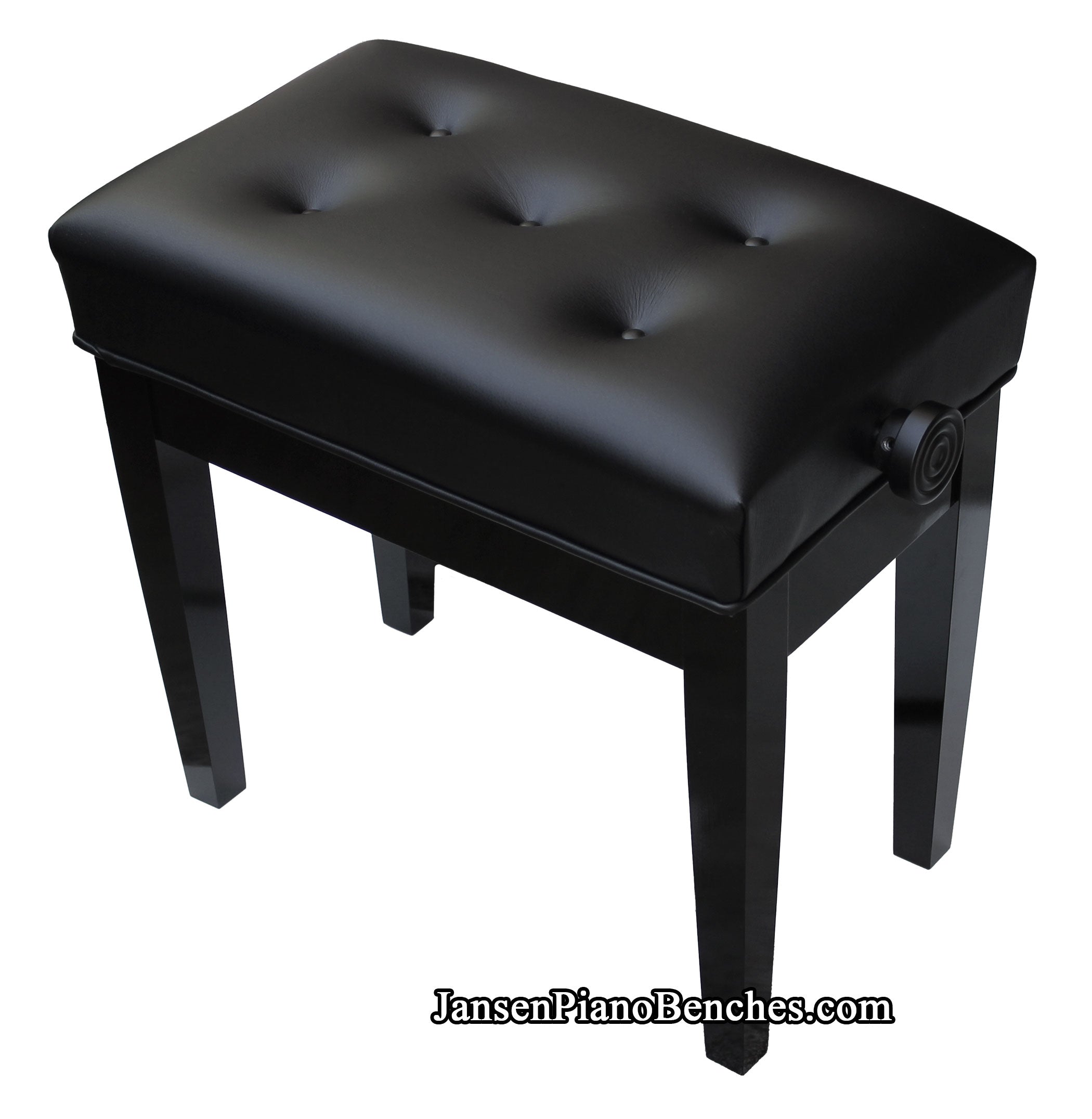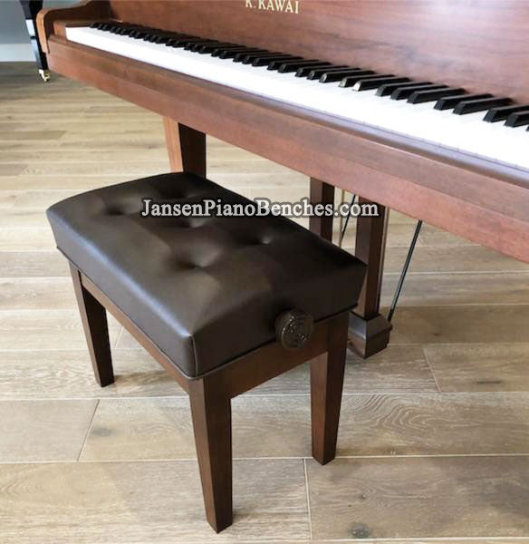 The Jansen Petite Artist Bench is the highest quality, American made petite artist bench available on today's market. The piano bench is constructed of hardwood maple from the East Coast of the USA (known for it's beautiful wood grain), and is supported with heavy-duty brass hardware. The upholstered top uses the highest-end furniture grade vinyl or genuine leather, and the padding of the bench is an extra-thick, firm polyester foam which will not break down over time. Petite artist benches are ideally suited for Baby Grand pianos, uprights, or anywhere where a smaller sized bench fits better. Many people find the more conservative top design (compared to the diamond-tufted top on standard artist benches), is better suited for their particular needs.