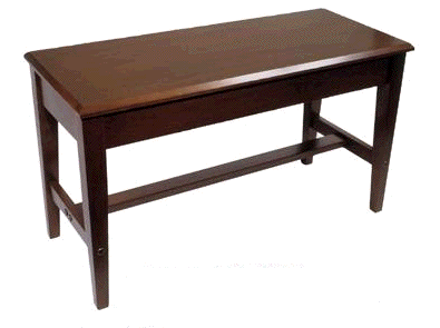 Similar to a grand type piano bench, but built much stronger, the school bench comes with a reinforcement cross-bar. The bench measures 14.5 X 33 inches, height is 19" (this bench is half an inch longer than a grand piano duet bench). Functional and strong, with a large music storage compartment.