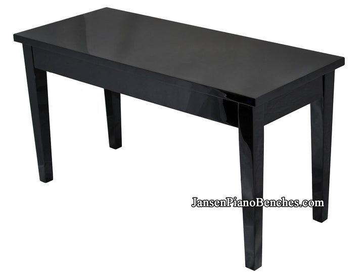 A great value for the quality of the bench, this product will look good in front of both upright and grand pianos. The wood top lid is thicker than most at 1 inch. The music compartment is deeper than standard benches as well, at 2.5". Special attention has been paid to detail, as the inside of the sheet music cabinet is finished to match the bench. For high-polish benches, the inside lid is also high-polish, and not just painted a satin finish. The high gloss finish is quite shiny, with a mirror-like finish, and the bench looks real sharp next to a high-polish black piano.
