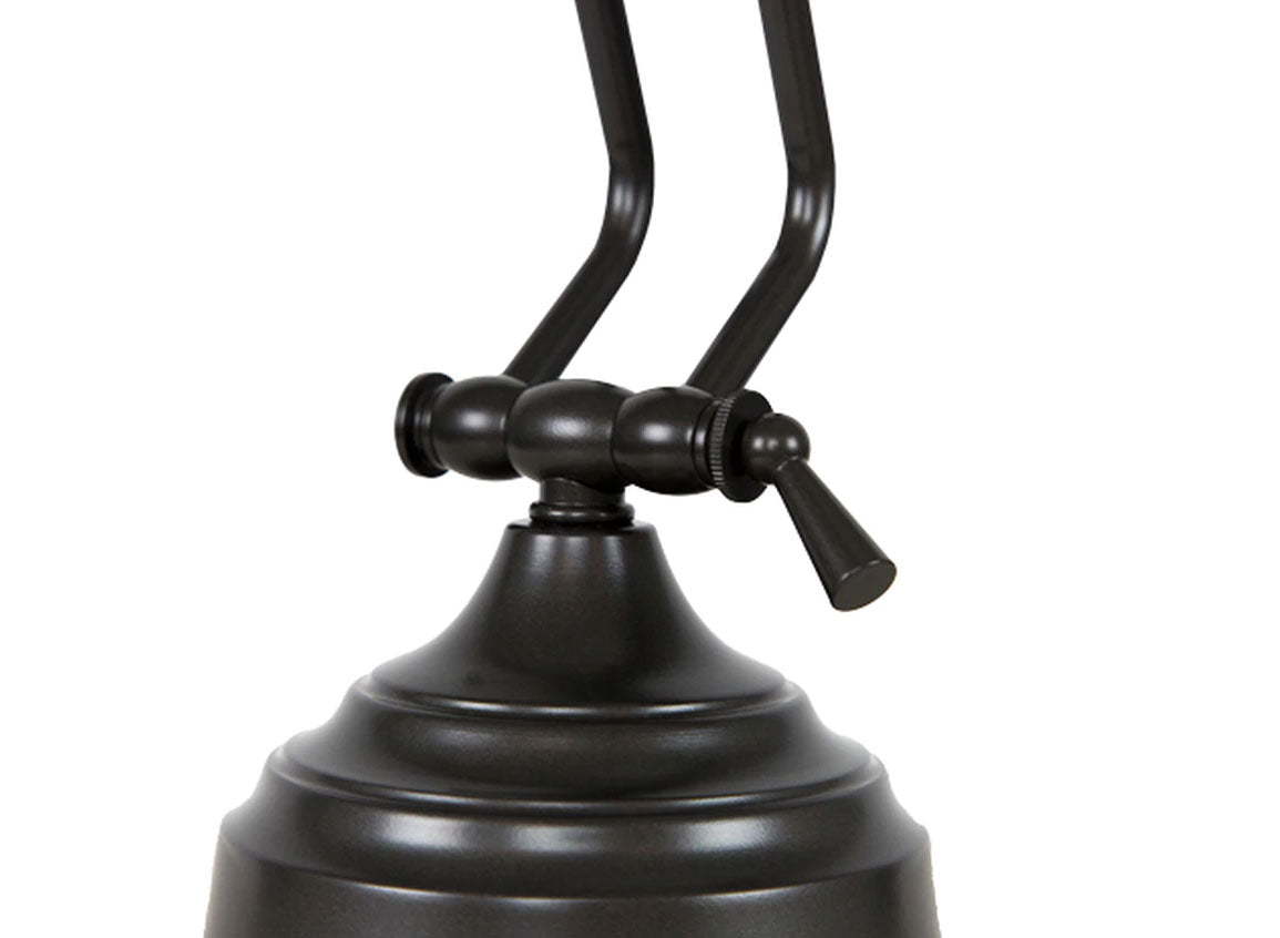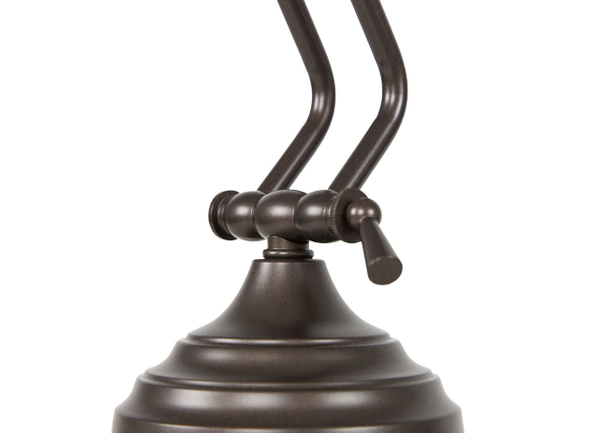 This lamp has a one-point adjustability feature on its neck, allowing for a 180 degree angle of adjustment and a maximum height of 14".