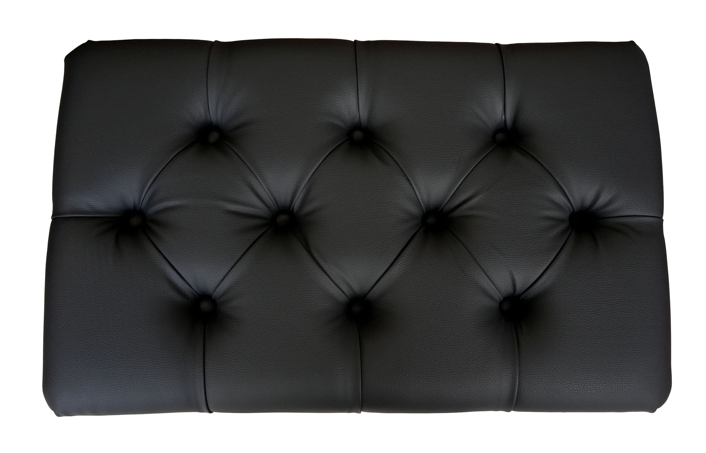 - Upholstered top: Furniture-grade vinyl with a tufted 10-button design