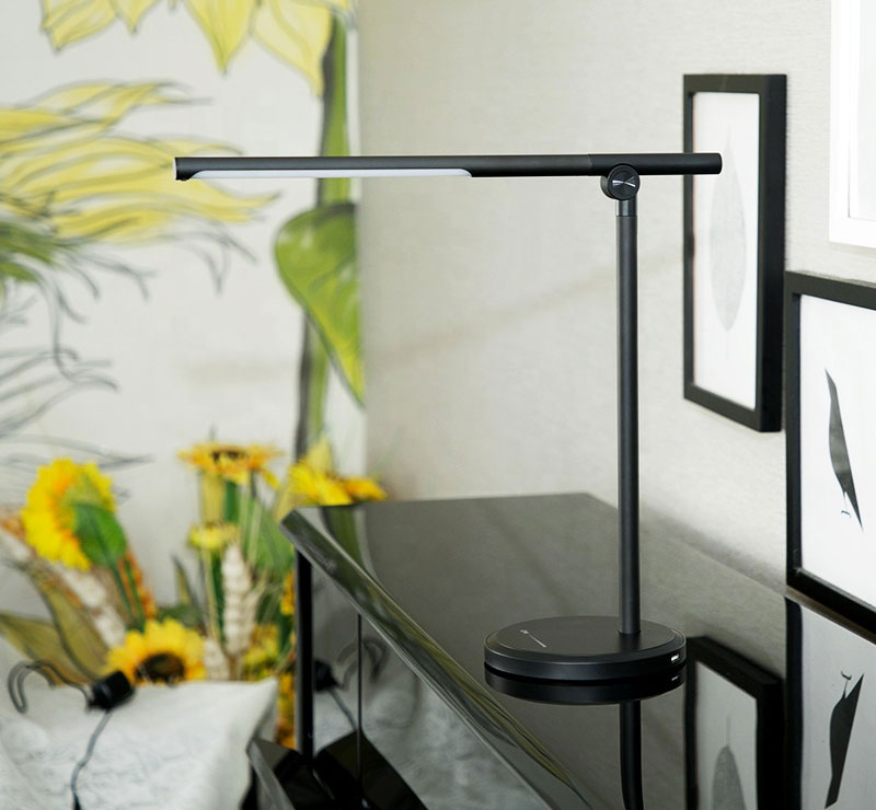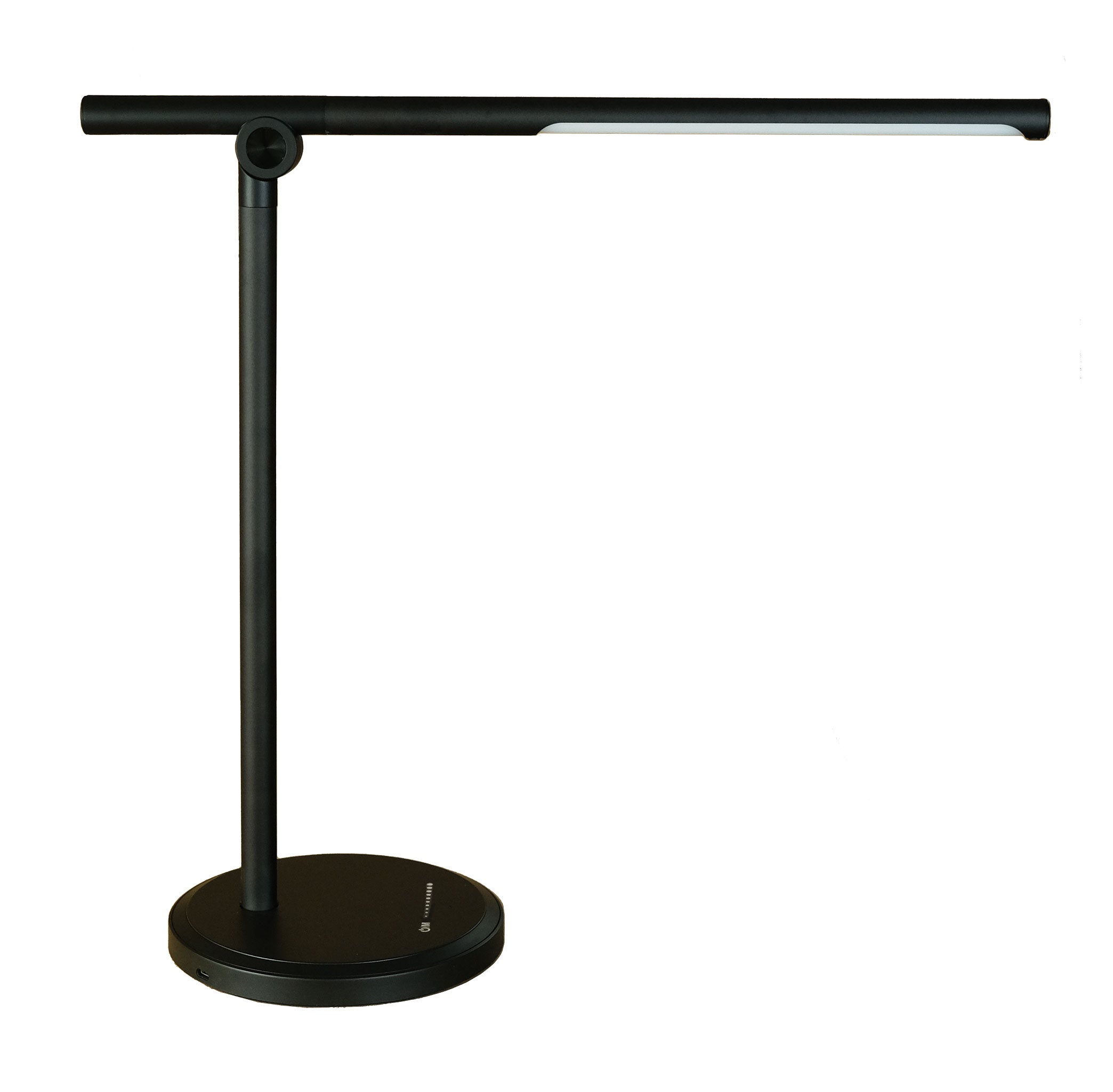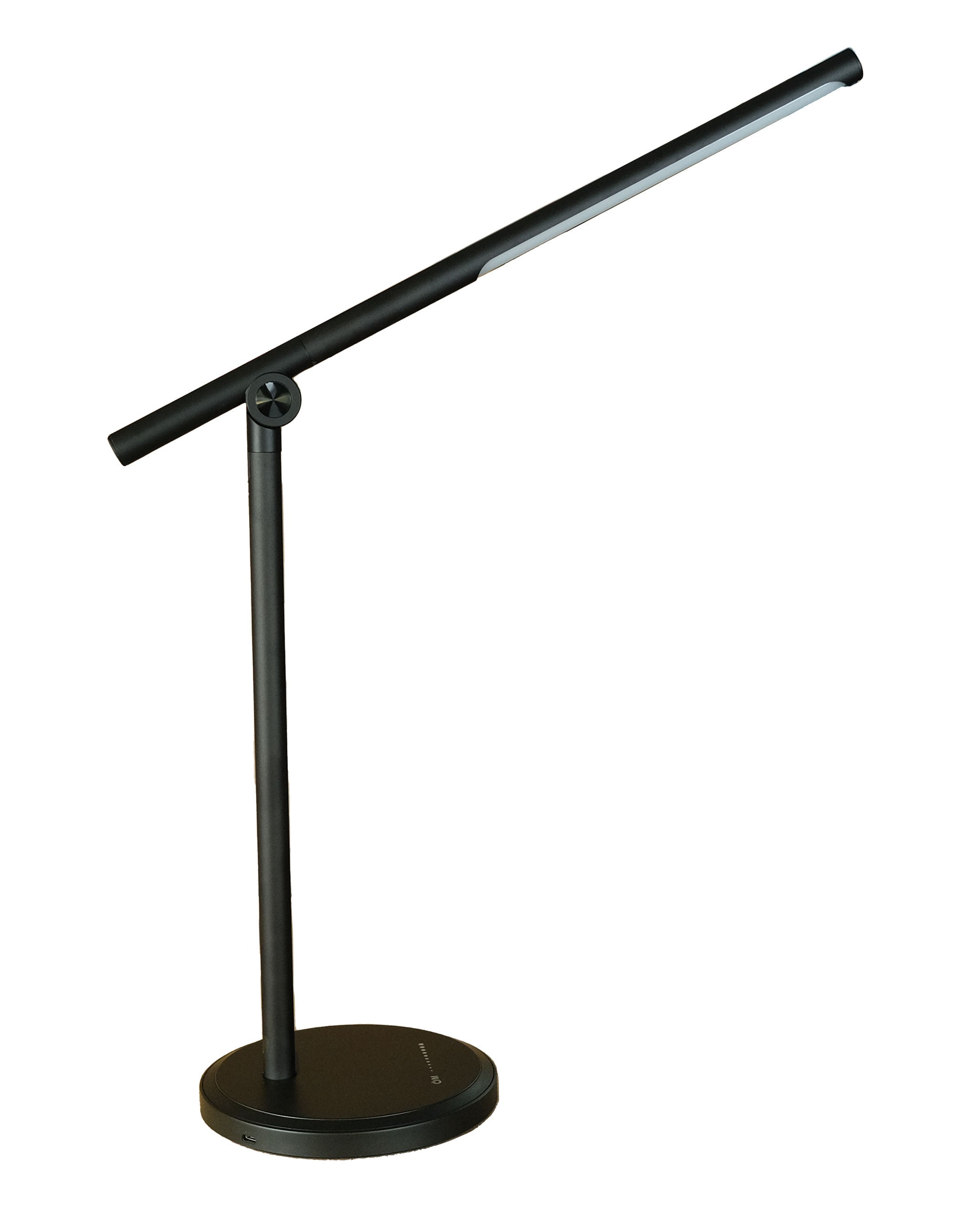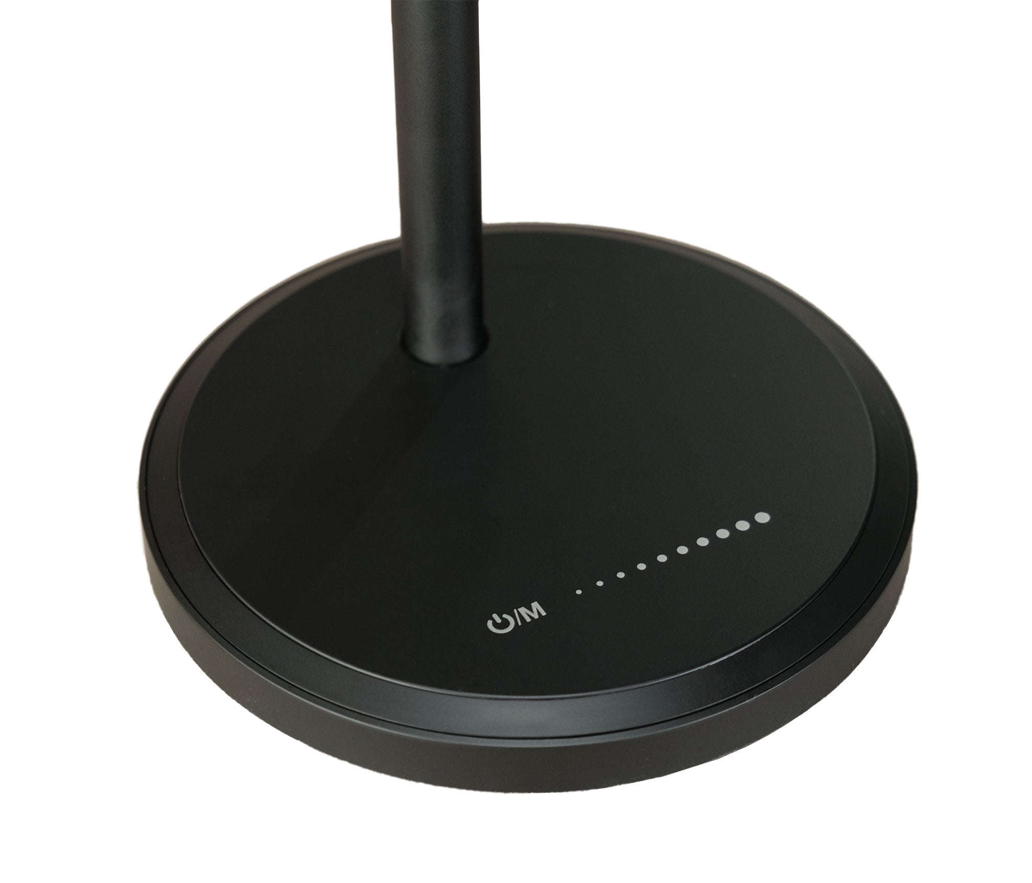 The lamp is touch operated, with the controls on its 6" wide base. To turn the lamp on, tap the power button. To adjust the brightness, press the cascading circle buttons to the right of the power button--you can also hold down and swipe right or left to adjust the brightness.