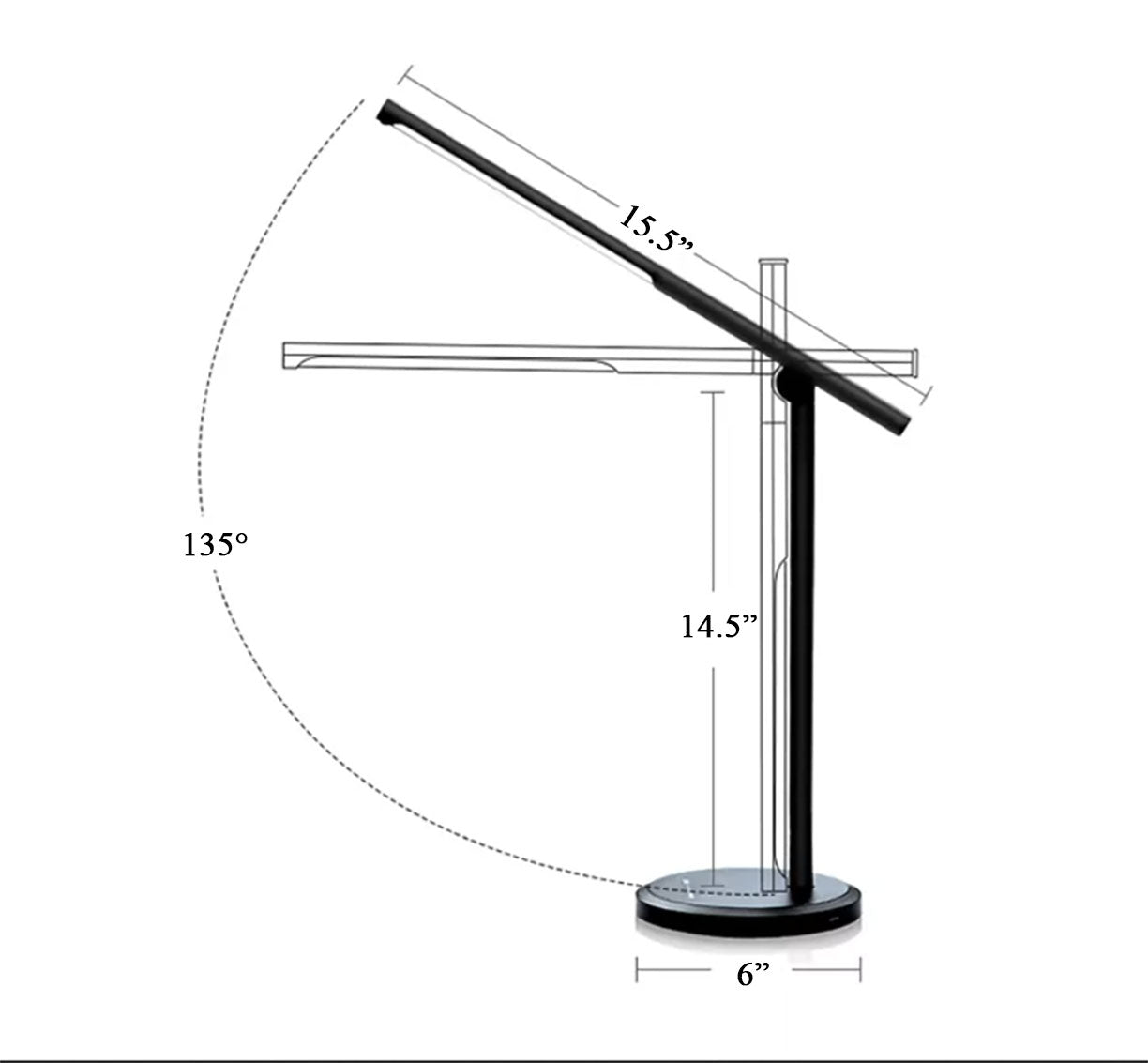 Made of metal, the lamp measures 14.5" tall, with a 6" wide base, which is lined on the bottom with textured rubber to protect the finish of your piano. The shade is 15.5" long, with the light bar being 8". The lamp shade rotates from 0 degrees to 135 degrees, letting the player adjust the angle of lamp to find their optimal lighting.