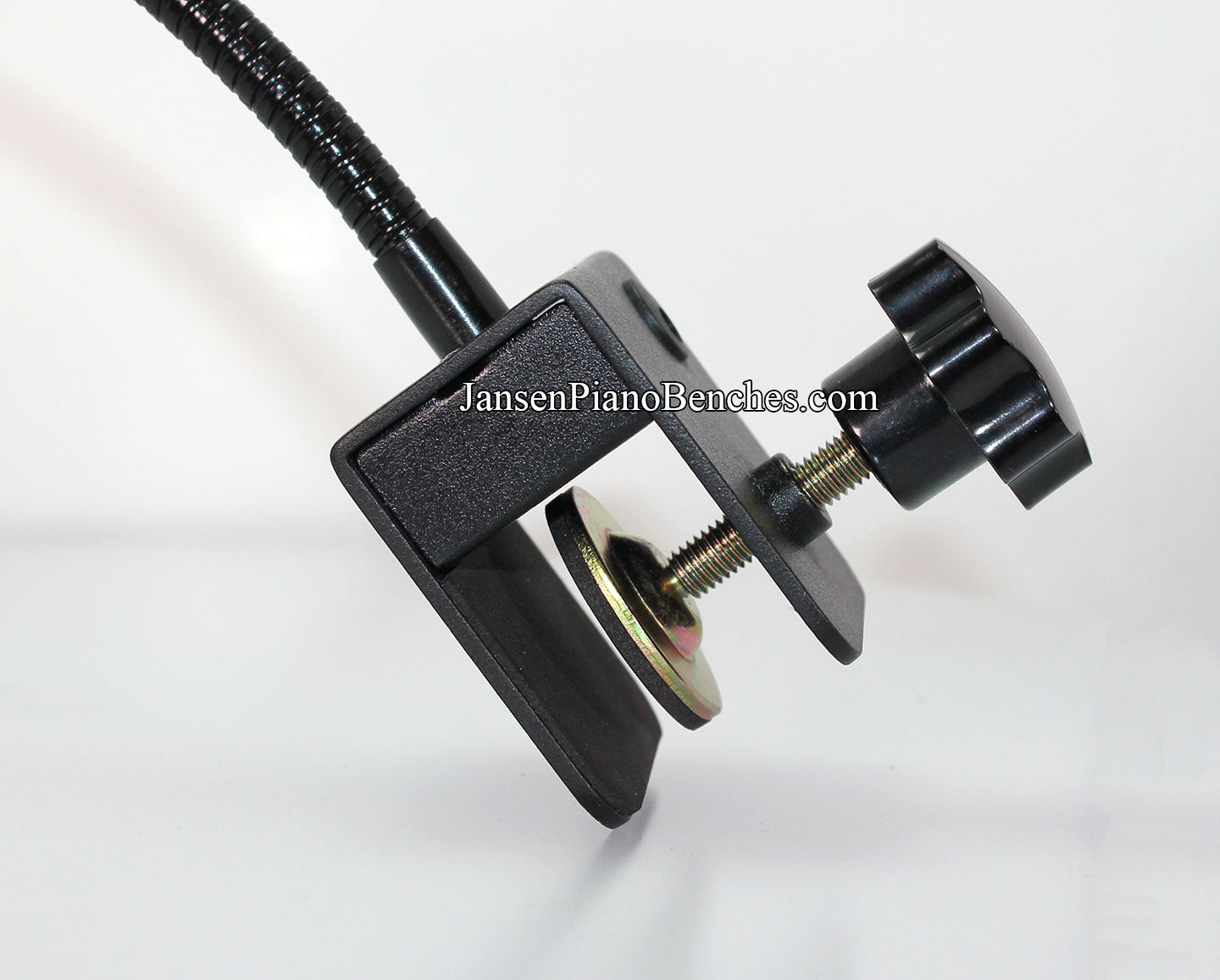 What sets our piano lamp apart from the rest is our dedication to superior design and high-quality materials. This lamp boasts a sturdy metal base, gooseneck, and shade, offering both durability and a timeless, elegant appearance. Unlike lamps with cheap plastic components, our design includes a robust metal clamp with soft rubber pads to protect your piano's finish. The clamp is designed to fit snugly on your music desk or stand, preventing any damage with its lined soft rubber pads on the inner metal wall and adjustable piece. Our competitor’s lamps lack these protective features, risking scratches or dents on your music rack.