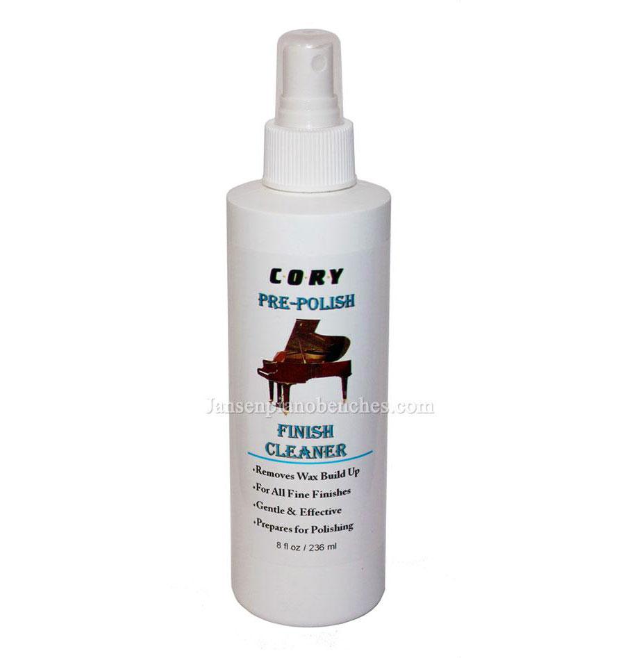 Cory Pre-Polish Finish Cleaner is the perfect choice for preparing your piano's finish for polishing. It quickly and easily removes wax build-up and grime. Pre-Polish Finish Cleaner is gentle and effective, and safe for laquor, polyester, polyeurethane or shellac finishes. Easy to use with the included fine mist sprayer.