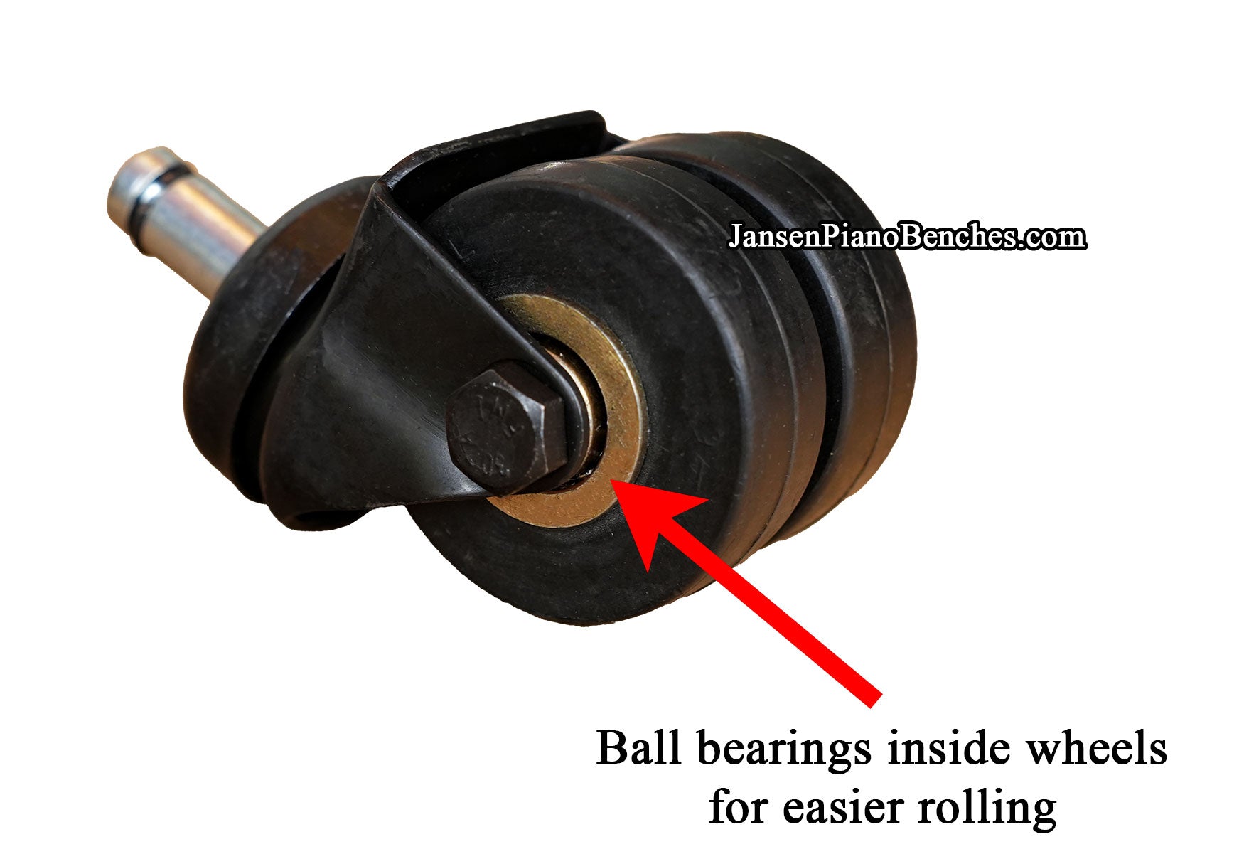 These top-of-the-line Darnell dual rubber piano wheel casters are equipped with four sided double ball raceways, that feature ball bearings in the wheels for easier rolling. For heavier upright pianos, these are the best option on the market (both in supporting the most weight, and in ease of transport).