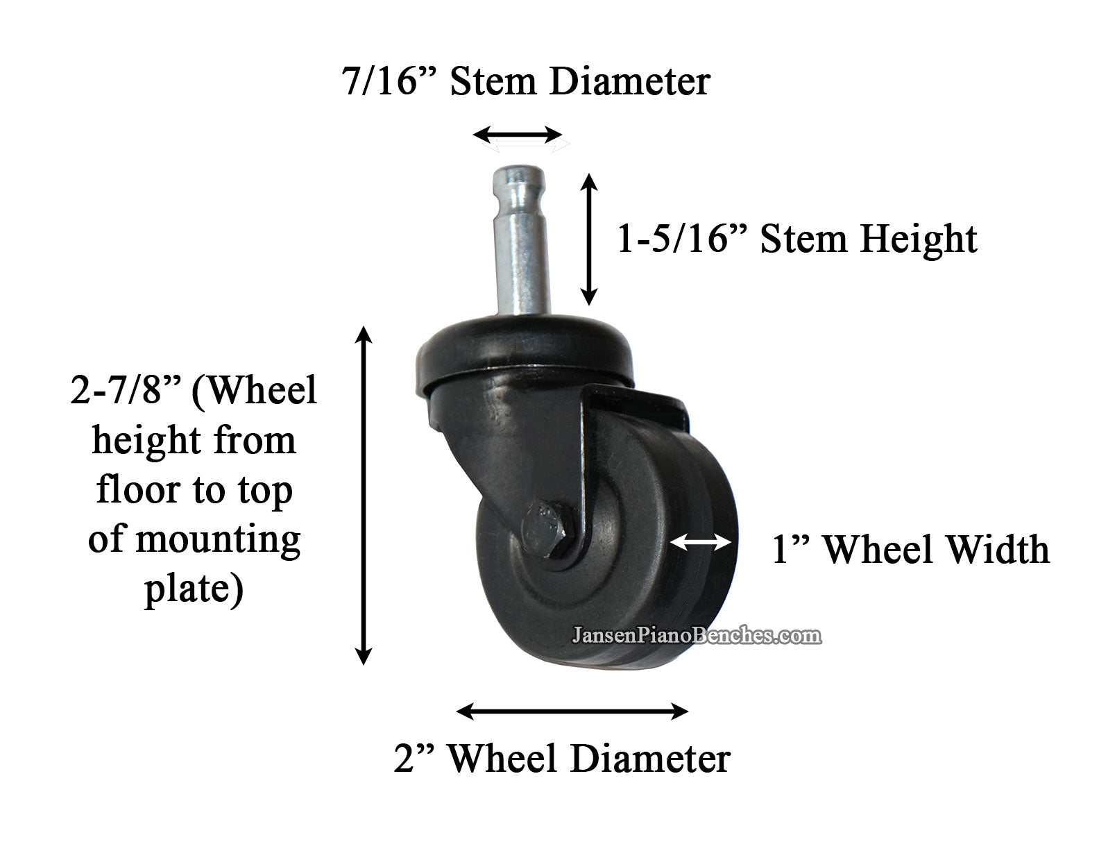 Every piano is a little different, and unfortunately, there's no universal database that matches caster sizes to specific piano models. However, we provide detailed specifications for each product — including stem diameter, stem length, and wheel size — so you can measure your piano’s existing mounting holes and compare.