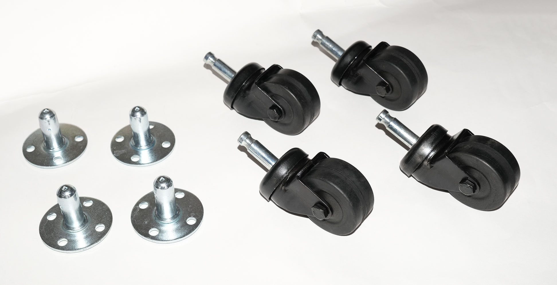 - Floor Type – Rubber casters are best for hardwood and tile. Brass wheels should be paired with caster cups to prevent floor damage.