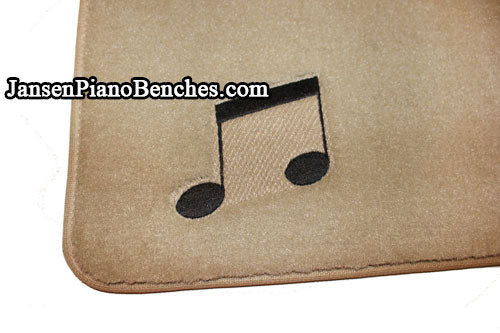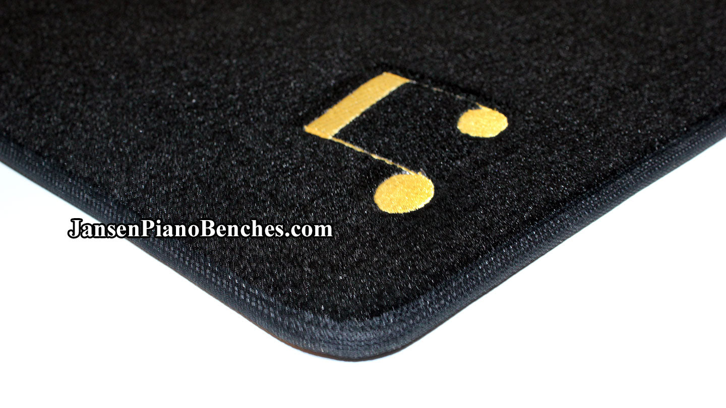 With a plush carpeted surface, this rug has a rubber back with no-fray stitched edges and a decorative embroidered musical note. The underside of the rug is a soft, textured rubber, so that the carpet does not easily slide around.