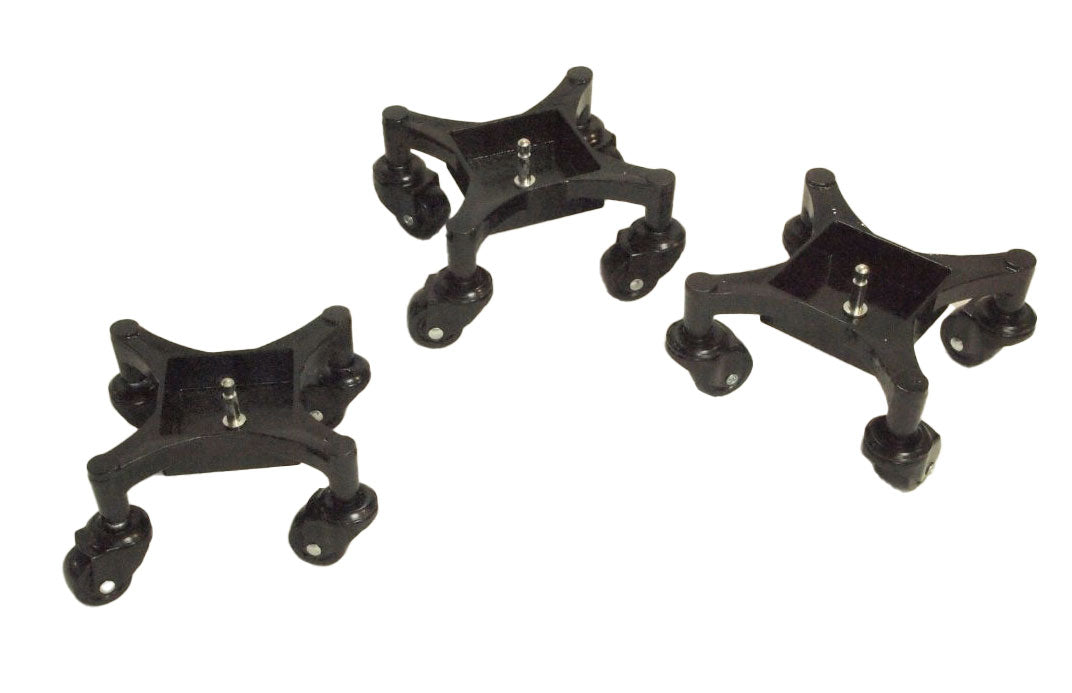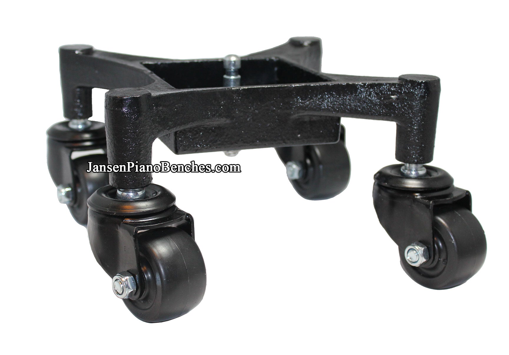 In stock and ready to ship, these imported grand piano leg dollies are made of cast iron, and sold in a set of three. Available in a round or square design (for round and square shaped piano legs), these dollies are quickly mounted to your grand piano, for fast and easy movement.
