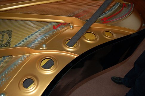 The grand piano sweeper is designed to dust the hard to reach soundboard of your piano. Dirt and dust on your soundboard can impact the sound quality, and start to ruin the varnish on the soundboard. This tool allows you to quickly sweep the soundboard, including underneath the iron frame by inserting it into the holes, and is long enough to clean under the treble strings (bass strings). If the piano is particularly dirty, you can dampen the sock to help with cleaning.