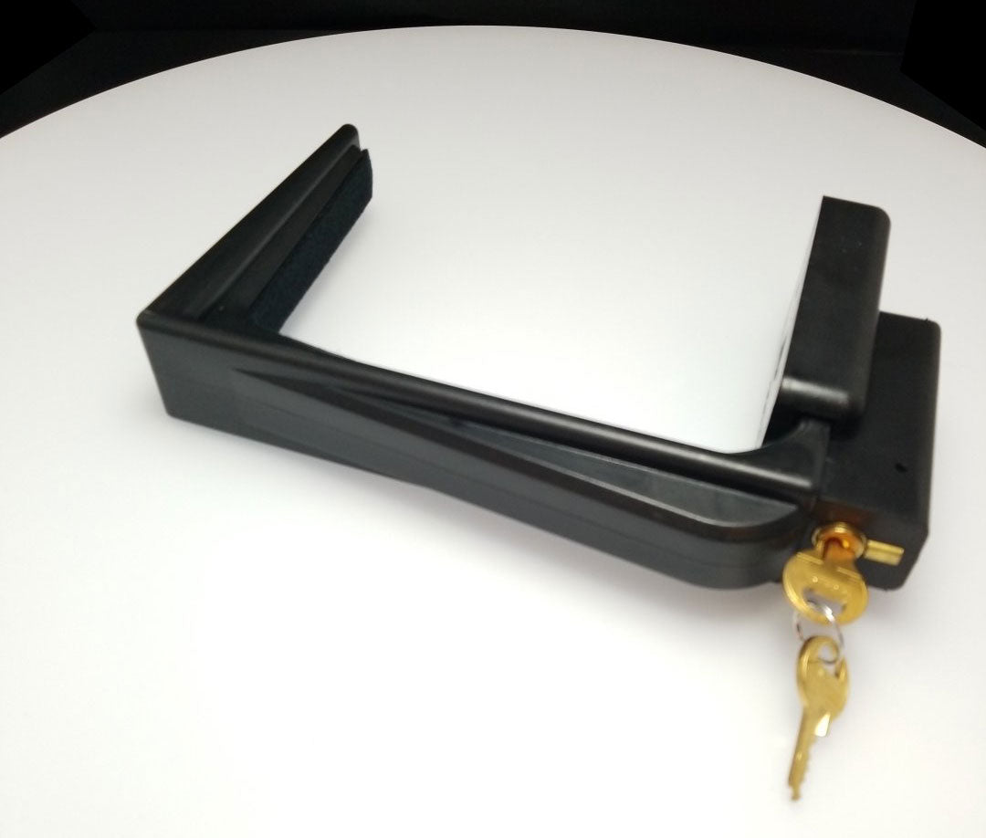 The best selling Piano Lock on the market! This unbreakable black noryl industrial thermo-plastic fallboard lock makes it impossible for unauthorized people to open up and play your piano. Extremely light weight, it has a 6" wide opening to fit virtually every piano, and is supplied with 2 pre-drilled shims to adjust height. The Clamp is lined with felt, so it will not damage the piano's finish. The locking mechanism (self-contained) is made by Master Lock for added security.