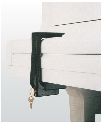 A piano fallboard lock is a security device used to prevent unauthorized access to the piano keys. It features a clamp that attaches to the underside of the piano, and a locking mechanism ensures the fallboard stays secure. The lock is made of unbreakable Noryl plastic, featuring a Master Lock for added protection. -