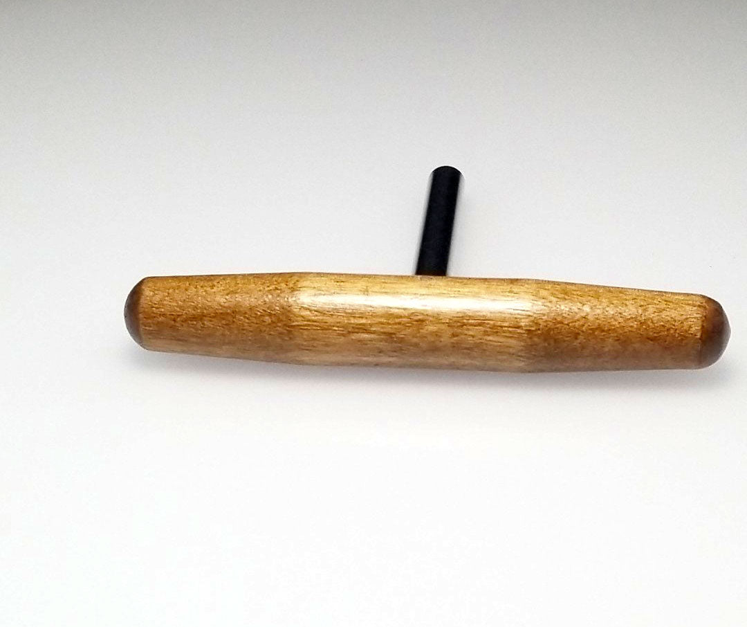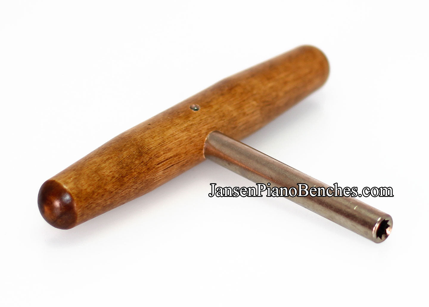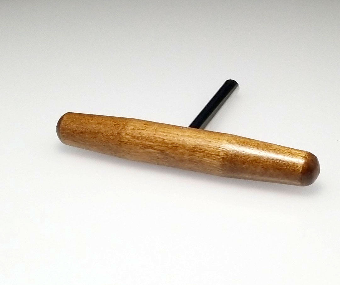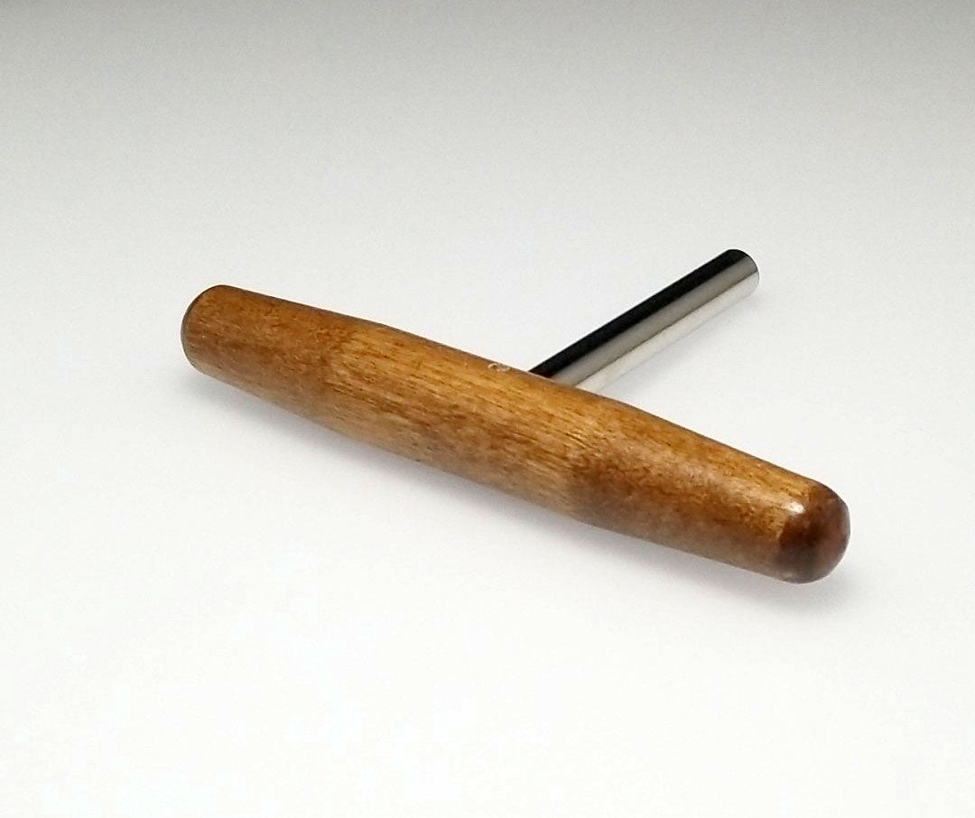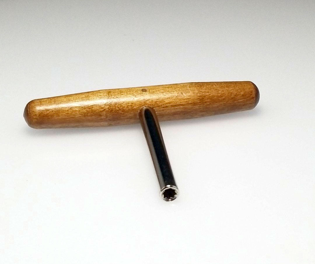 This harpsichord tuning wrench can be used on zithers, dulcimers, harps and harpsichords. Convenient T shaped design, with a 3.5" steel shaft and 5" hardwood handle. Star tip wrench allows you to tune most 4mm (1/8") square tuning pins from multiple angles. Quality piano tool manufactured in the United States.