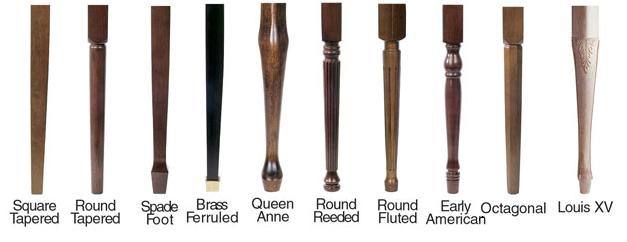 Leg Styles AvailableSpade, Square Tapered, Brass Ferrule, Round Tapered, Queen Anne, Round Reeded, Round Fluted, Early American, Octagonal, Louis XV