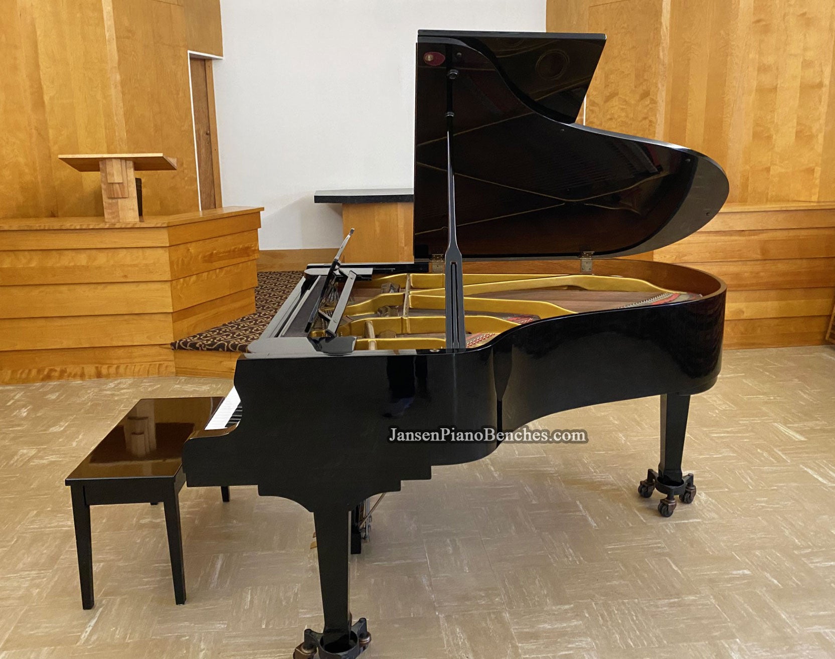 Yes. Jansen uses oversized wheels that make it easier to move heavy pianos across carpet, tile, or hardwood — reducing strain and preventing damage. Our competition uses smaller, more inexpensive wheels, making it more difficult to move your piano.