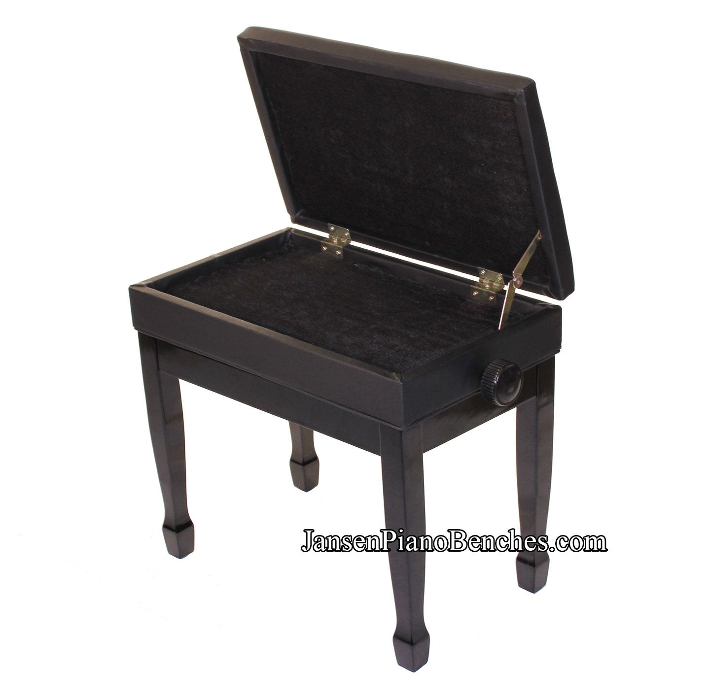 This beautiful and affordable High Polish Black Adjustable Piano Bench is imported by Paul Jansen and is made to their own specifications.