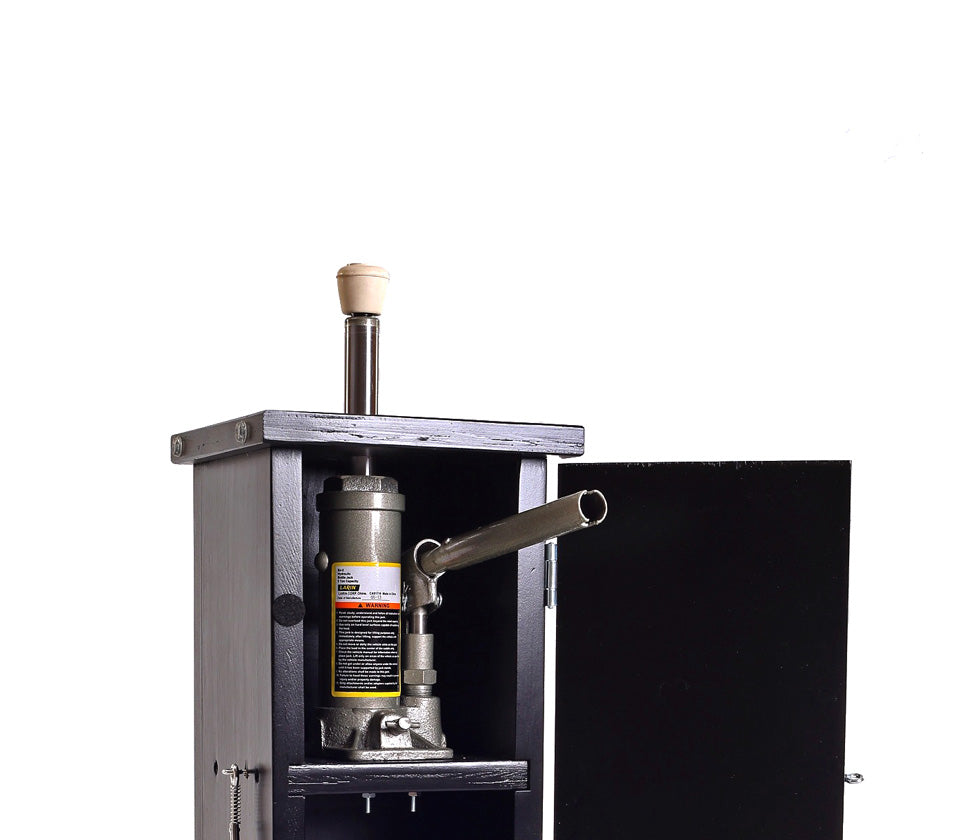 The Jansen Jack-in-the-box piano raiser is designed for raising one grand piano leg at a time so that you can remove or replace a piano leg, piano caster, or install piano caster cups. The Box comes complete with a hydraulic jack mounted inside and has ample storage space for extra caster cups and tools. Manufactured in the United States by Jansen.