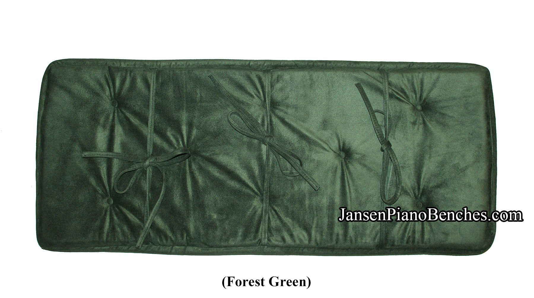 Listing is for an American-made Jansen piano bench cushion, measuring 14.5" x 35", in the Forest Green color.