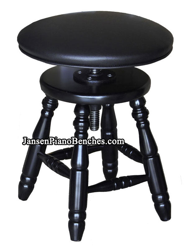 Jansen Piano Stool - Satin Ebony - Black Vinyl Upholstered Top