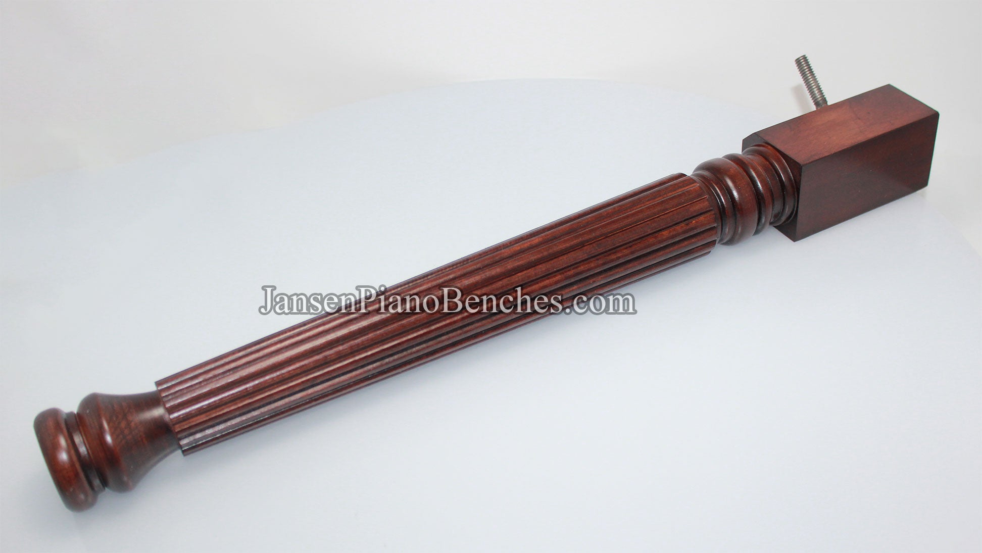 Jansen Upholstered Top Upright Piano Bench - Mahogany Finish Round Reeded Legs - Open Box is backordered and will ship as soon as it is back in stock.