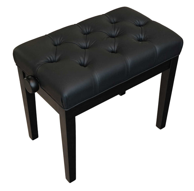 Listing is for an adjustable piano bench, in a satin black finish, with a square tapered leg style. This is an open-box item. The bench is a customer exchange, for someone who needed a duet-size bench. The bench itself is in new, unused condition. We are offering $50 off the bench, with free shipping to the contiguous USA (Alaska and Hawaii, please email for a shipping quote)