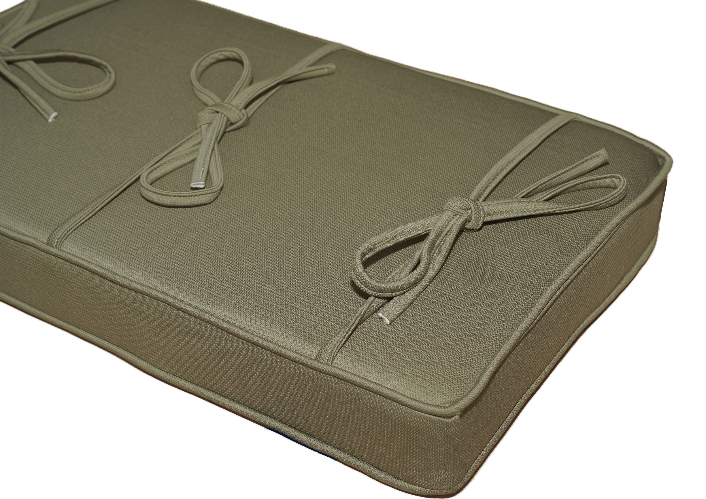 This GRK piano bench cushion measures 25" x 14", and is 3" thick. The cushion color is ivy. Attaches to your piano bench via 3 sets of ties. High quality cushions, manufactured in the United States. Retails on our website for $199.00, we are offering $40.00 off on this cushion sale.