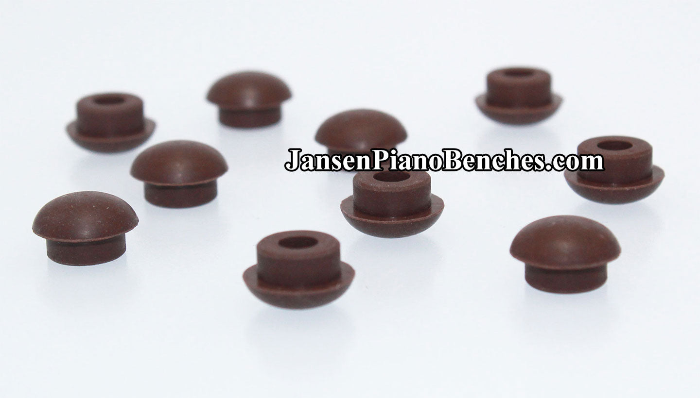 These rubber piano cabinet buttons can be used on fallboards, grand lids, cabinets, benches, etc. Sold in a quantity of 10. Available in black, brown and white color options. Also great for furniture.