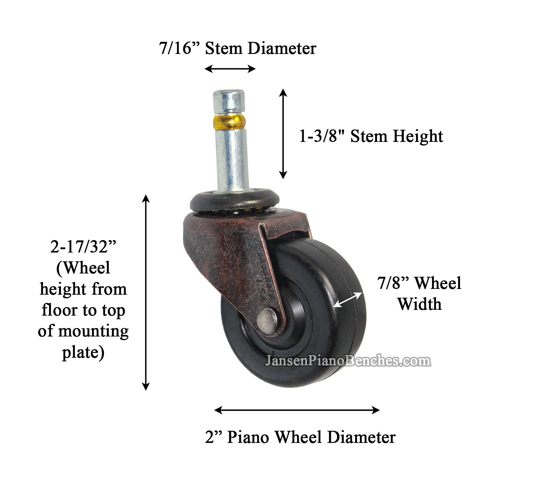 Rubber Piano Caster Measurements: