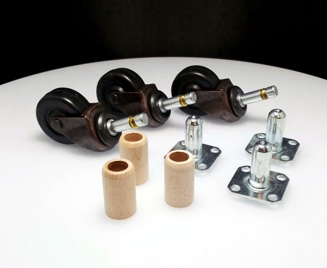 - Floor Type – Rubber casters are best for hardwood and tile. Brass wheels should be paired with caster cups to prevent floor damage.