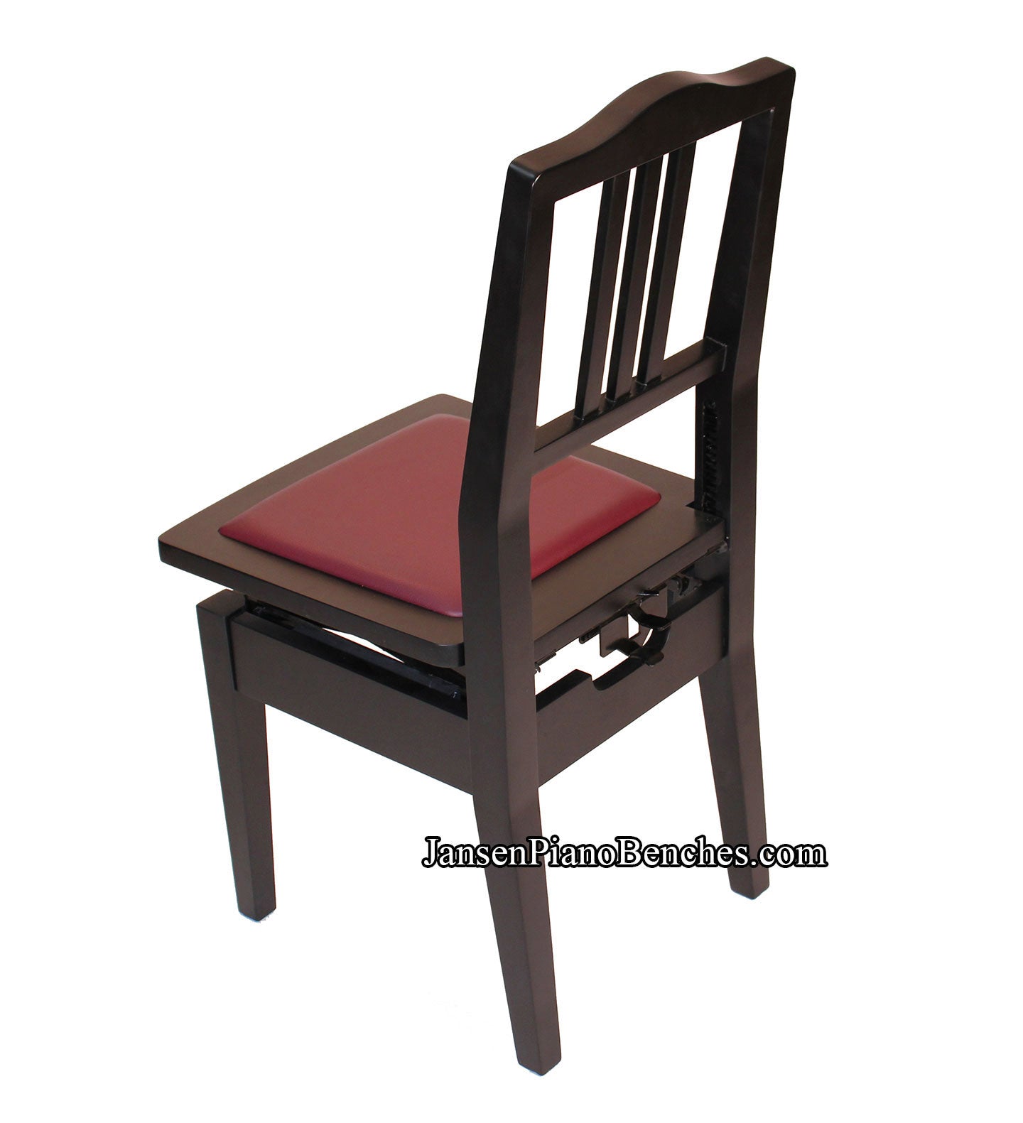 Jansen discontinued their production of the Jansen piano chair a few years ago. Due to popular request, we are happy to offer this quality imported adjustable piano chair as an alternative. It is constructed of 100% hardwood, and adjusts in height from 17" to 21.5". A very high quality piano chair--this is the one Yamaha uses to pair with their new pianos.