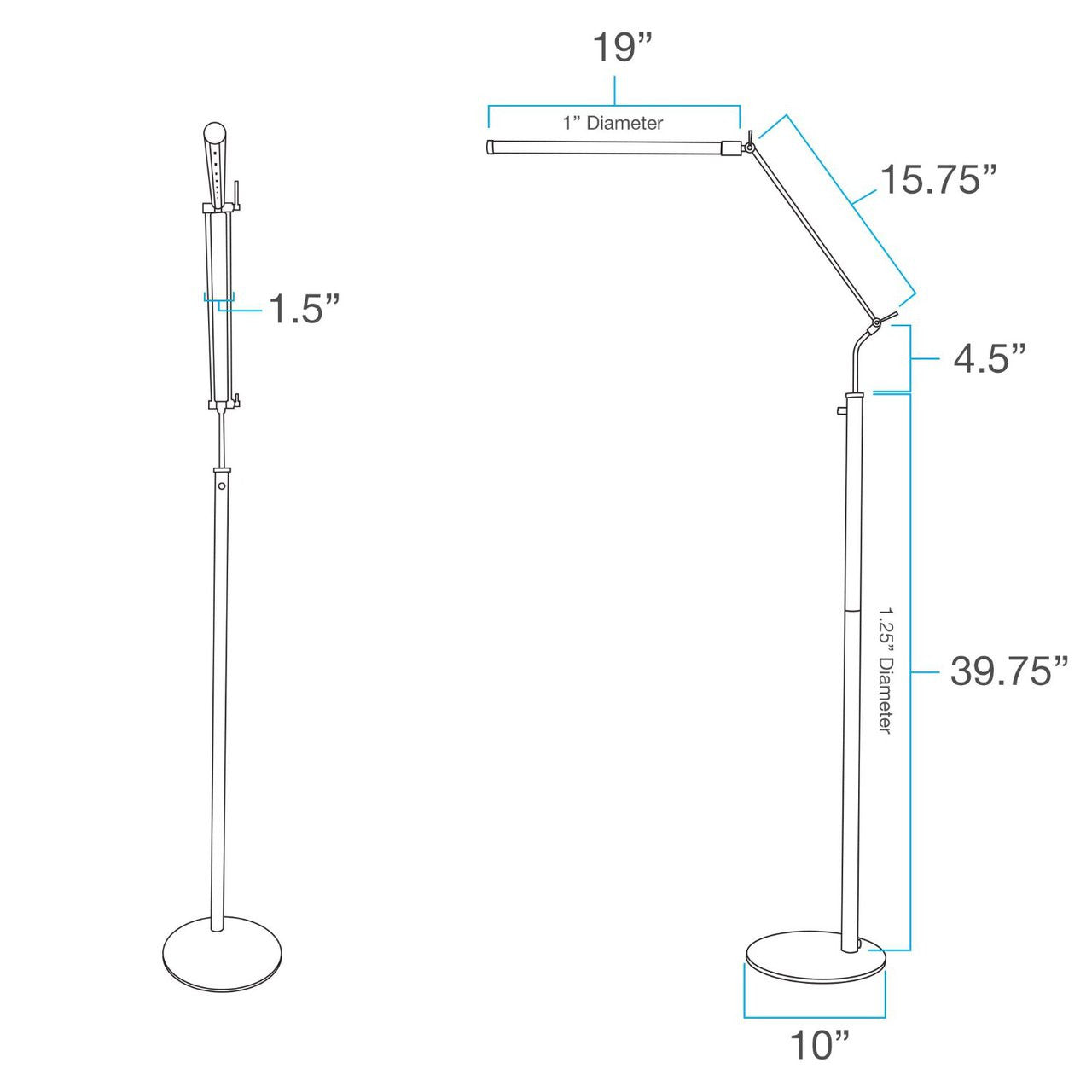 This lamp has 4 points of adjustability, allowing you to turn and twist it to best fit your usage. The base of the lamp is lined with felt, allowing placement on any surface without scratching or leaving any marks.