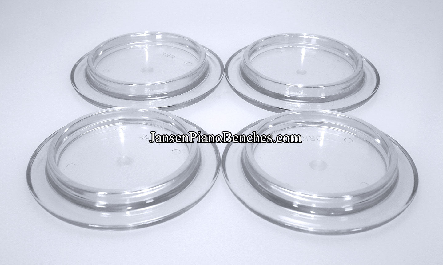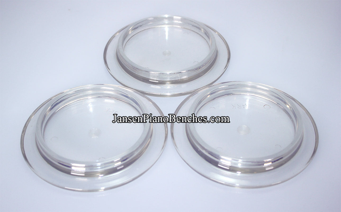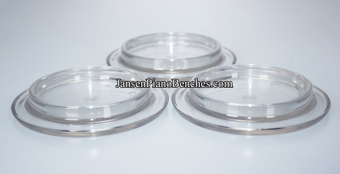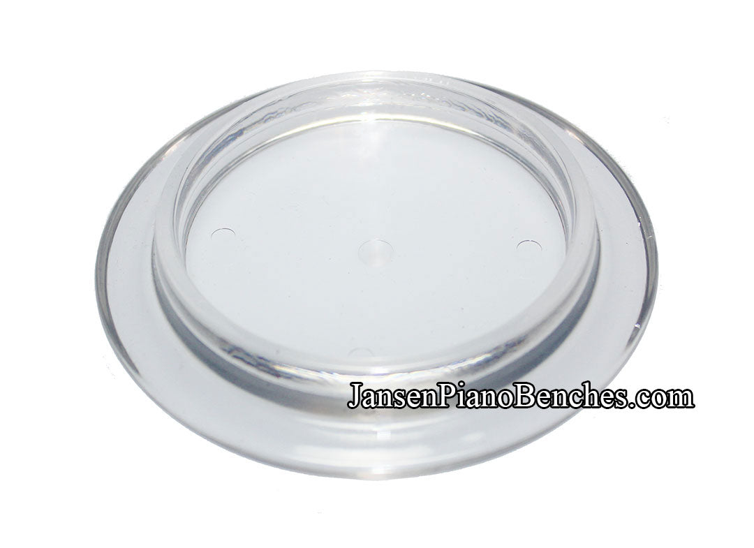 These clear lucite piano pads have a flat inner cup, as opposed to the a bowl shaped design with raised edges of some caster cups, or the slot in the middle of the other lucite caster cups (where the wheel sits into). The flat surface also makes these a great choice for home furniture.