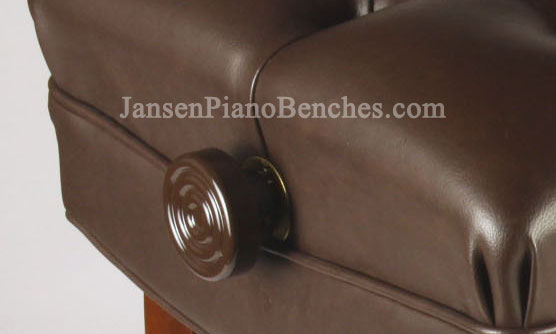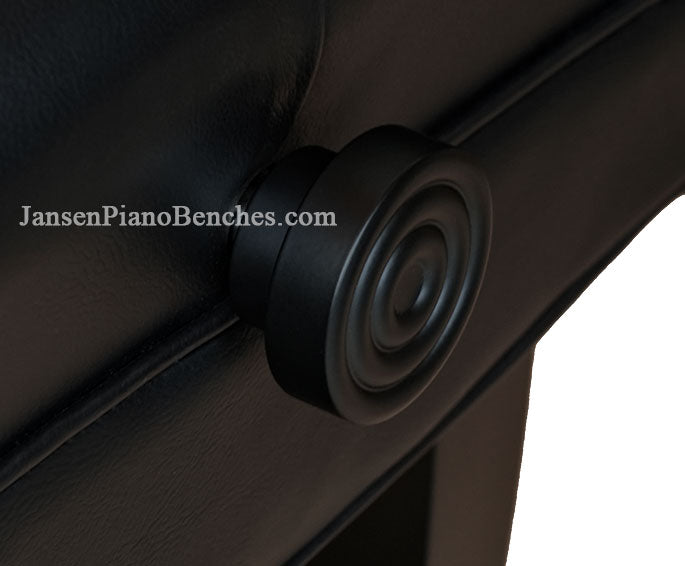 Replacement knob for Jansen artist benches. Sold as a set of two knobs. Please note these will only work with the Jansen artist bench, as knobs are not universal (these won't work on an imported bench for instance). Available in black (ebony), brown or burgundy. The burgundy knobs go with the burgundy vinyl or burgundy leather upholstery, and the brown knobs go with brown vinyl and brown leather upholstery.