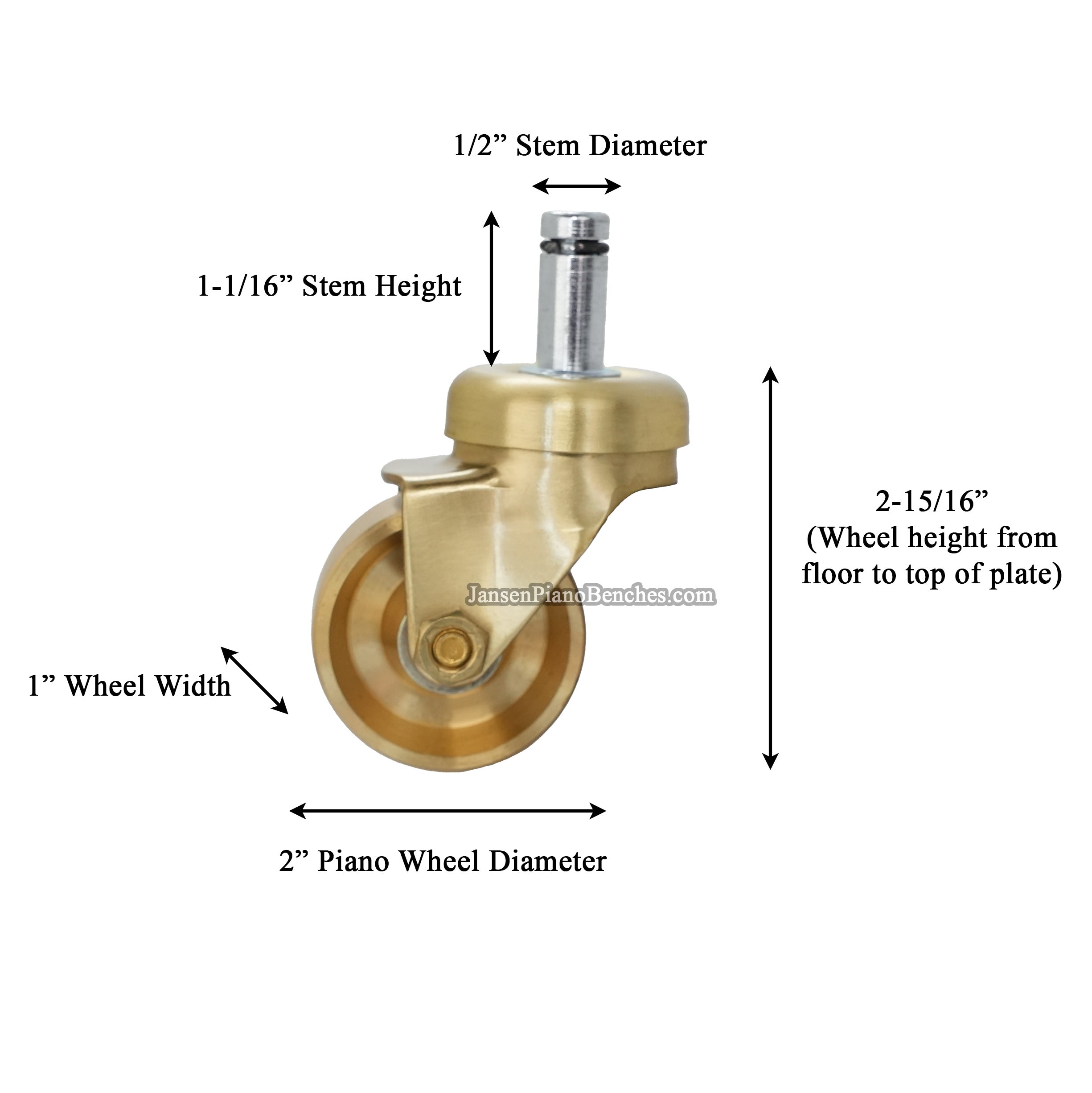 Looking for a slightly smaller diameter wheel for your piano? Check out our 1.5-inch Steinway-style brass wheels, designed in the same traditional style.