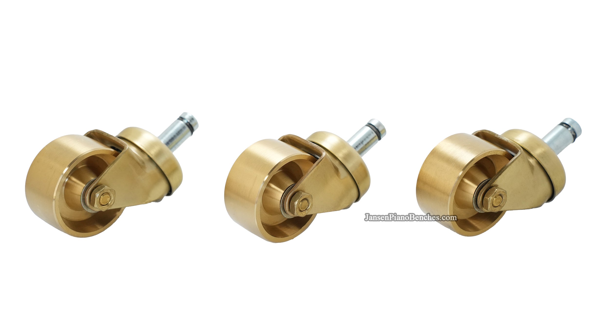 Give your Steinway grand piano the finishing touch it deserves. Designed in the classic style found on many Steinway grand pianos, these solid brass wheels are ideal for restorations, replacements, or upgrades. This set of three 2-inch casters offers a timeless, high-end look that complements the elegance of your instrument—perfect for upgrading the look of your piano room, for pianos on display, or in formal performance settings.