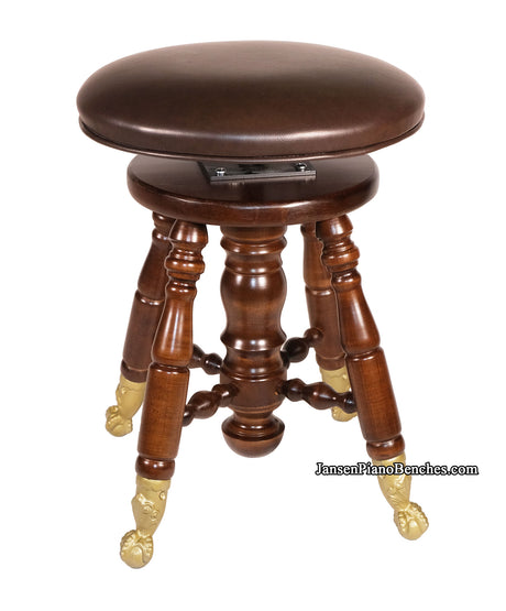 Jansen Piano Stool Walnut Finish with Brass Claw Foot
