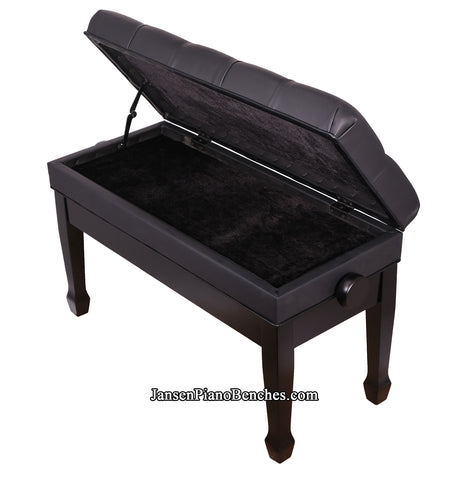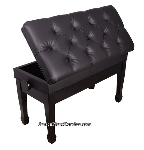 Satin Black Duet Adjustable Bench with Sheet Music Compartment