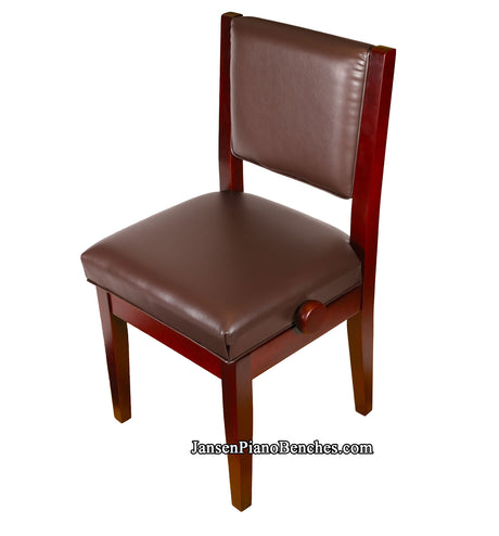 Satin Mahogany Adjustable Piano Chair - Padded Back