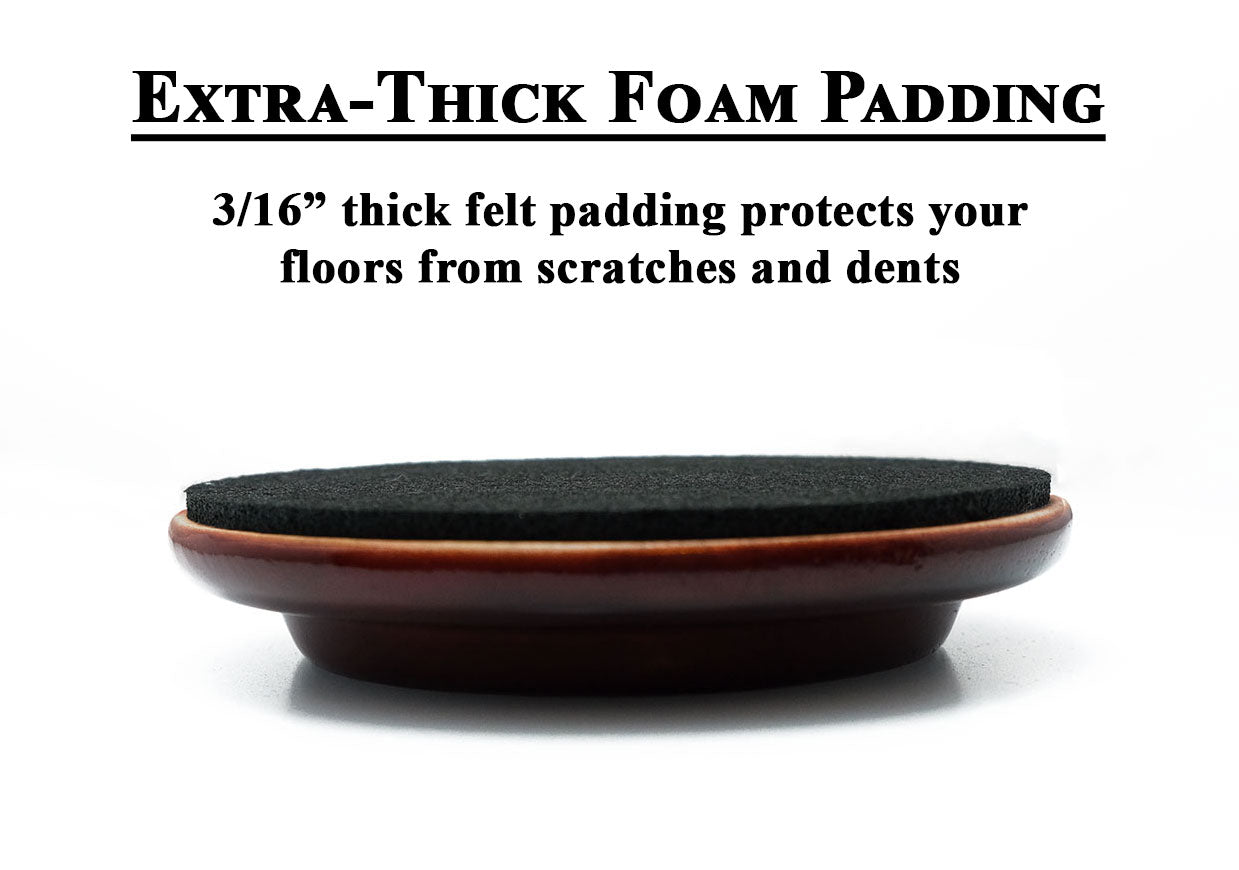 These piano pads have a 3-1/2 inch outer diameter, with an inner diameter for your piano wheels measuring 1-3/4 inches. Made from hardwood, the bottom of the caster cup has a felt pad to protect your floors from damage.
