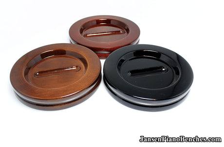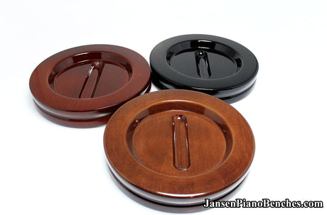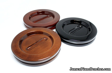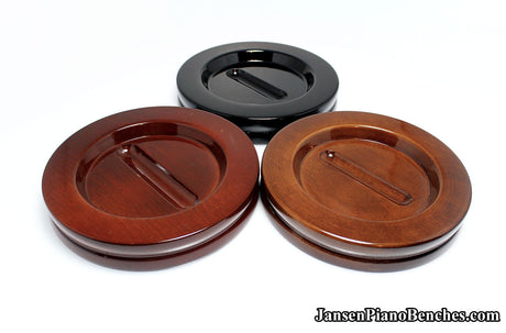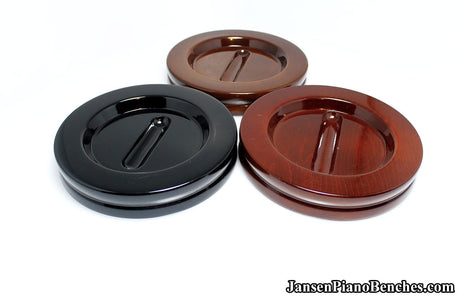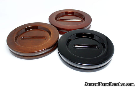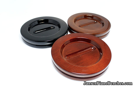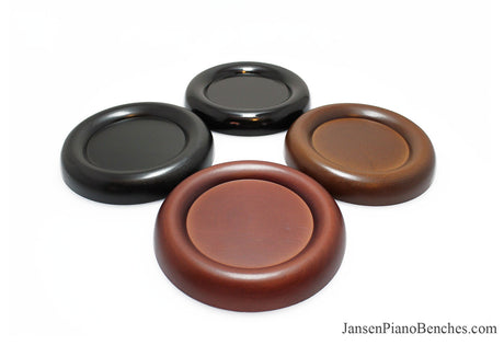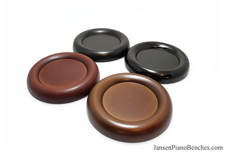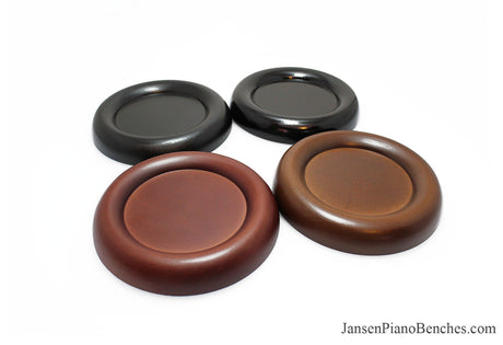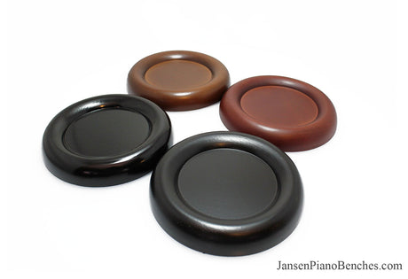 With so many options available, why select Jansen hardwood piano pads? Simply put, they are the highest quality grand and upright piano caster cups on the market. Jansen is the only company in the United States that manufactures caster cups (everything else is imported from China). Jansen uses Oak hardwood from the North Eastern US, and the pads are finished in the same factory as their piano benches.