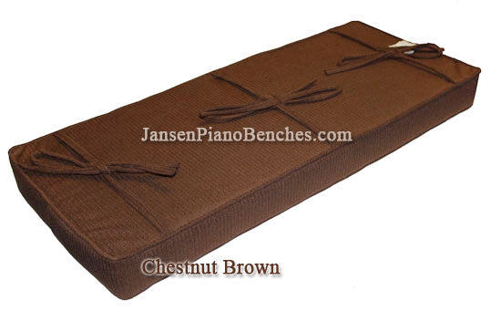 These cushions for your piano bench are made of a stain and soil resistant soft acrylic/polyester fabric, with matching sewn in tie downs for under the bench top.