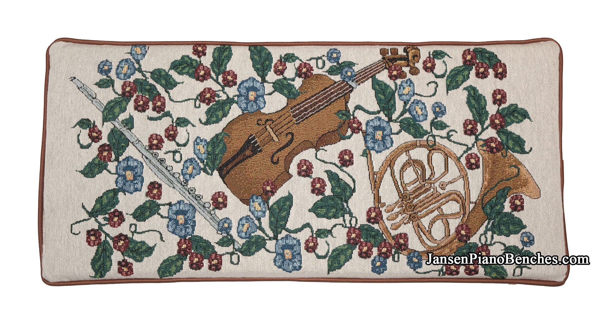This music tapestry, Violin and Horn Piano Bench Cushion piano bench cushion provides a combination of durability and beauty.