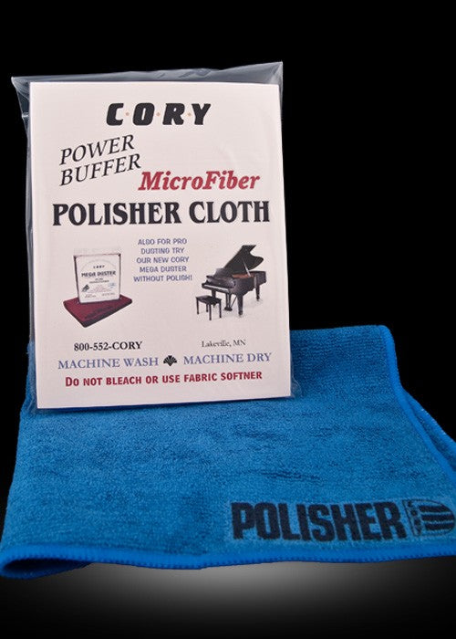 The Cory Microfiber Polishing Cloth is designed to be used with piano polish. Made of a soft, thick weave, non-treated flannel cloth for application and final shining of all Cory polishers and cleaners. Machine washable. Becomes more absorbent after each washing. Comes in protective, reusable pouch.