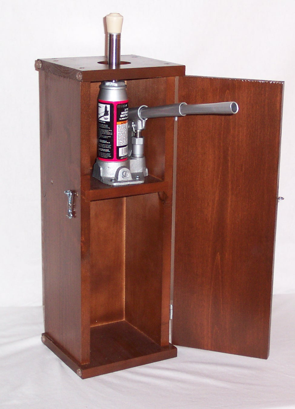 The Jansen Jack-in-the-box piano raiser is designed for raising one grand piano leg at a time so that you can remove or replace a piano leg, piano caster, or install piano caster cups. The Box comes complete with a hydraulic jack mounted inside and has ample storage space for extra caster cups and tools. Manufactured in the United States by Jansen.