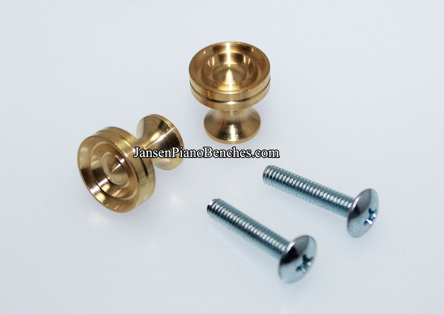 The large brass piano desk knobs are designed specifically for pianos and made out of solid brass. Knobs measure 5/8" in diameter and 5/8" in height. Also can be used on furniture projects. Installation is quick and easy, and this is an inexpensive way to breathe new life into the look of your piano.