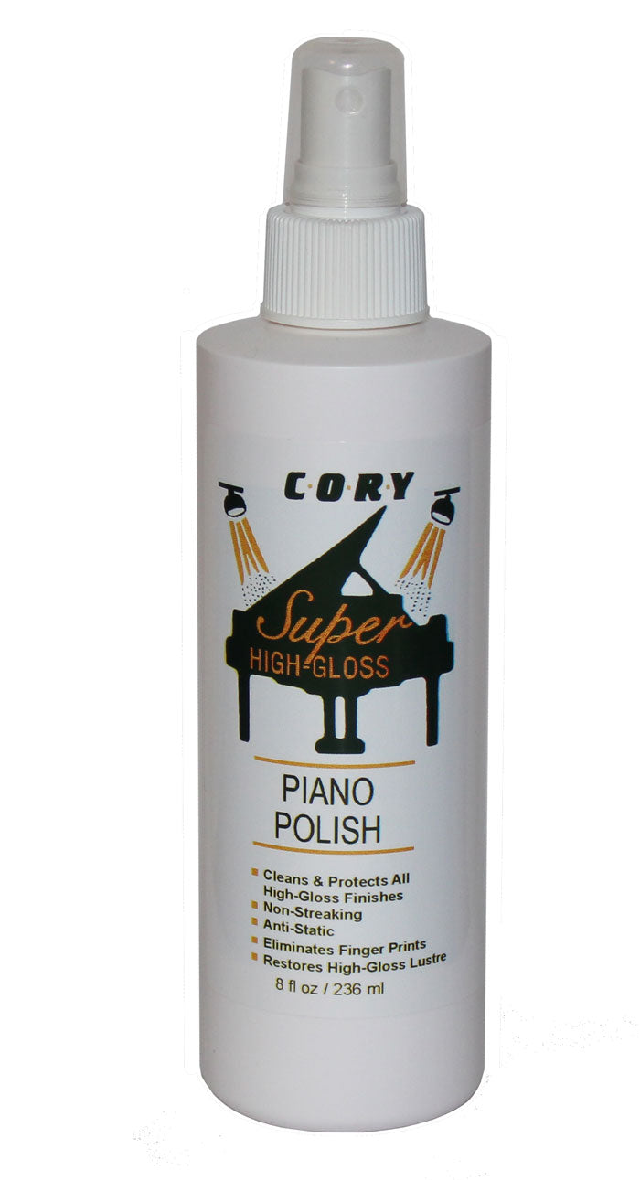 - Ensure the surface is clean of all oil-based polish, as well as dirt and dust. If your piano surface is in need of cleaning, consider using the Cory Pre-Polish Finish Cleaner, to prep and clean the piano. If you decide to use the Cory Pre-Polish, spray on the surface of the piano, cleaning with the thinner nap of the Cory Cleaner Cloth, then buff out with the reverse side of the cloth in a circular motion. If there is excessive film and residue, it may take a few times completely remove it.